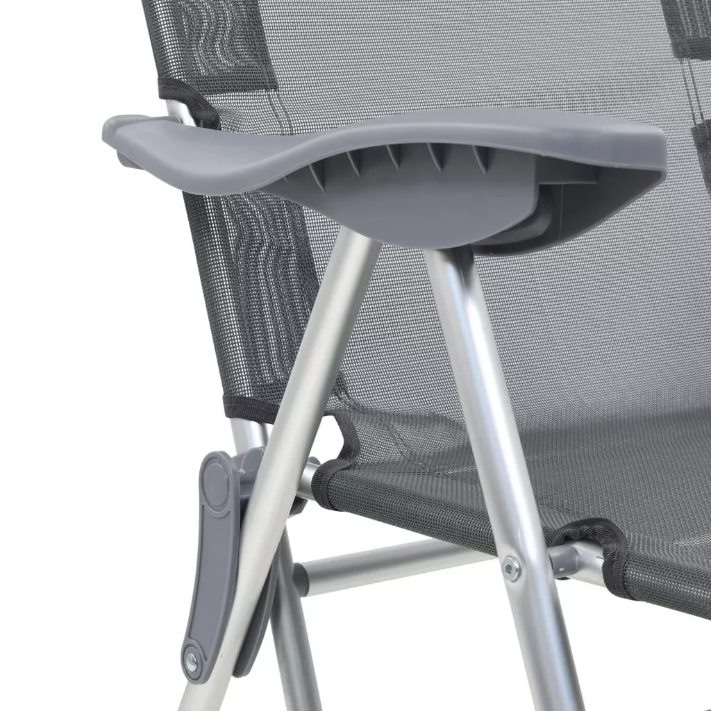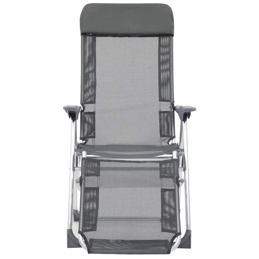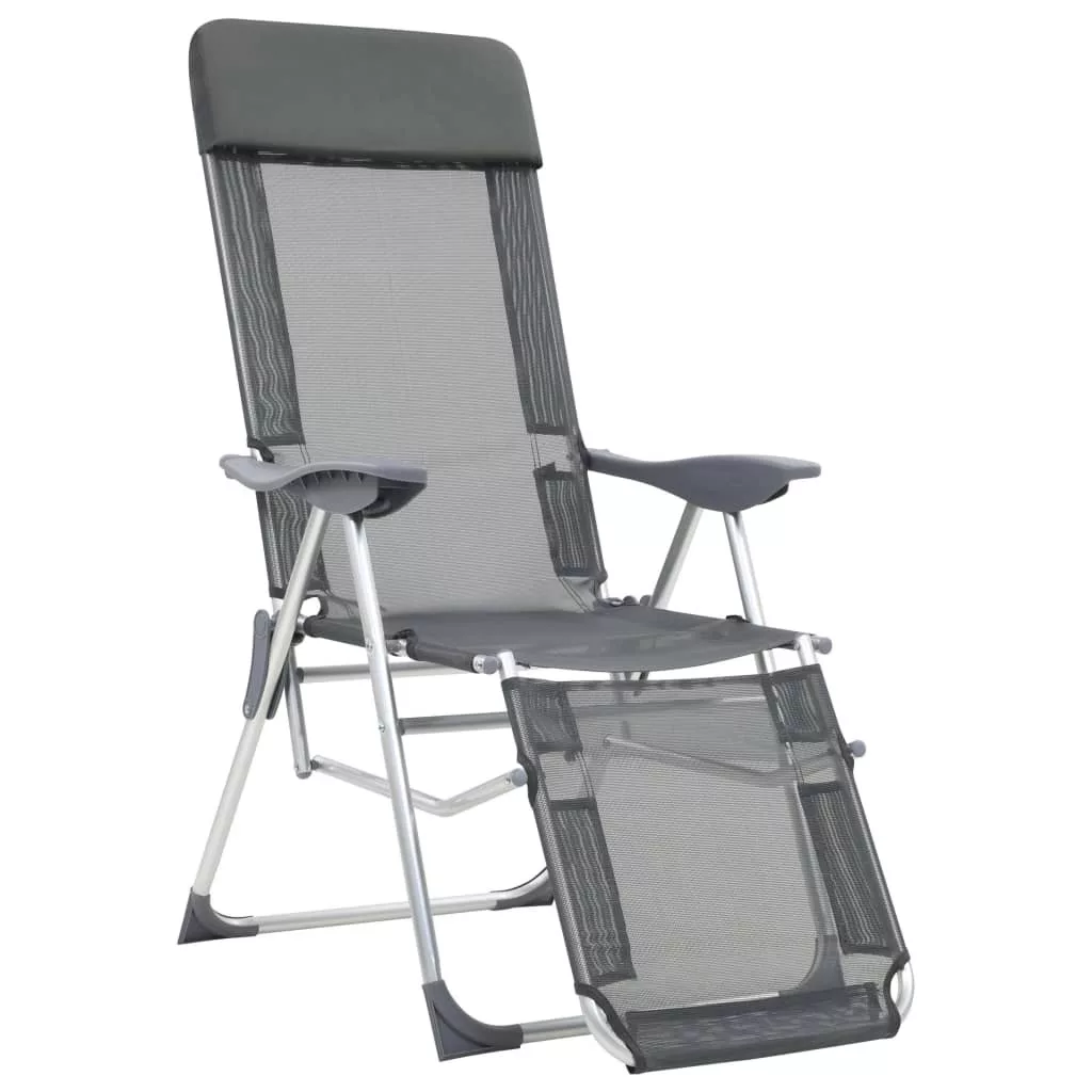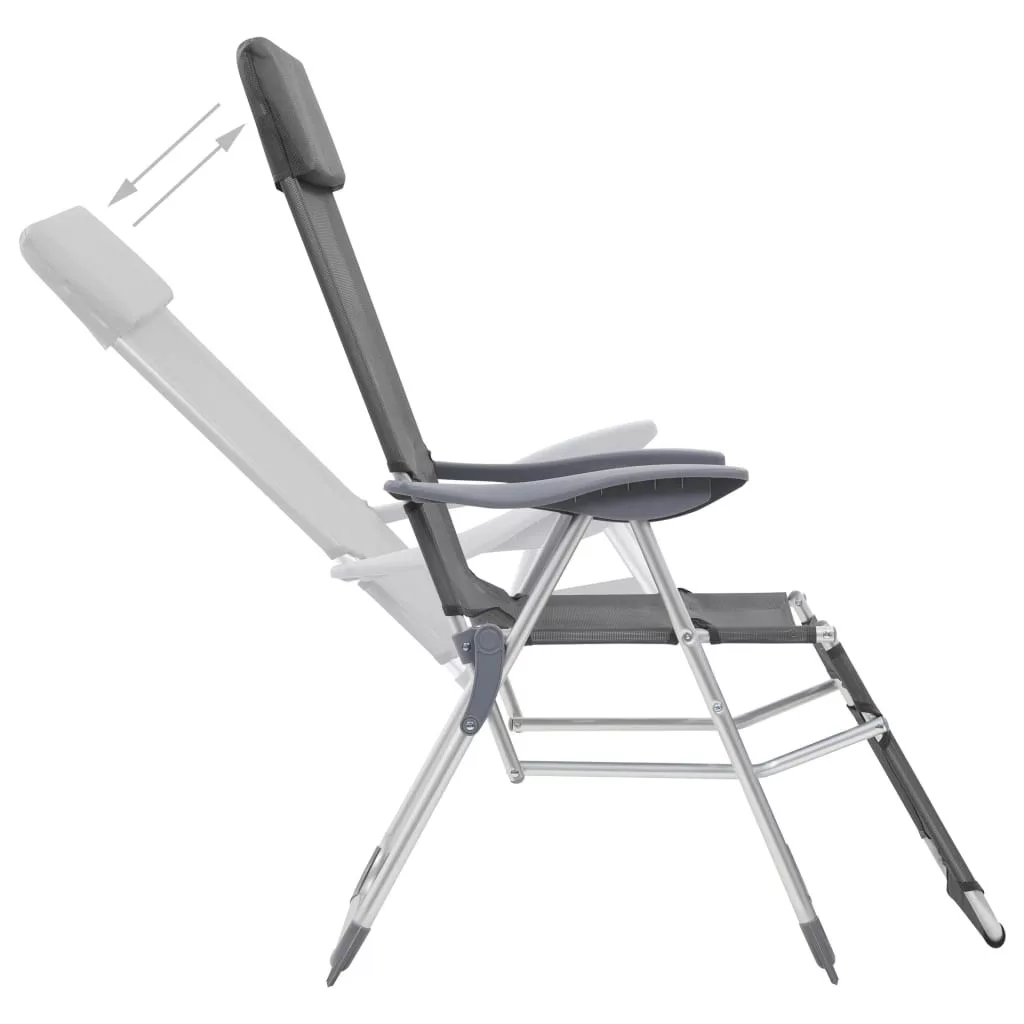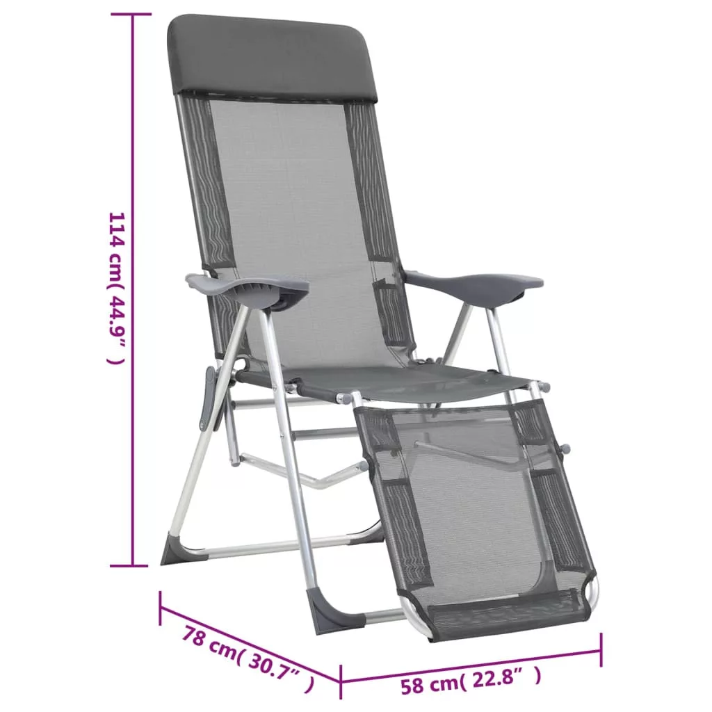 2 db szürke textilén összecsukható kempingszék lábtartóval