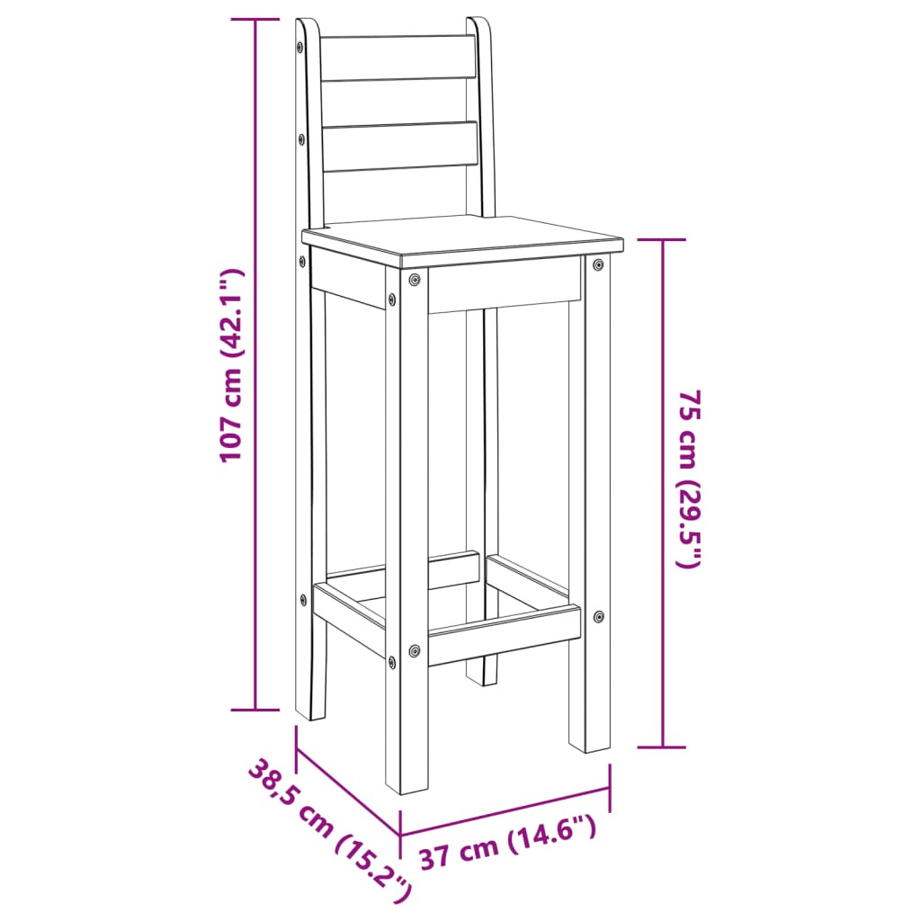 Ezek a rusztikus fa bárszékek otthona remek kiegészítői lesznek! Tömör fenyőfa: Ez a szék tömör fenyőfából készült. A tömör fenyőfa egy gyönyörű, természetes anyag. A fenyőfa egyenes erezetű, a csomók pedig jellegzetes, rusztikus megjelenést biztosítanak az anyagnak.Kényelmes ülés: A bárszék háttámasszal és beépített lábtartóval rendelkezik, így kényelmes ülést biztosít.Széleskörű felhasználás: A kocsmaszék minimalista stílusú, így bármilyen környezetbe illik otthonában. A konyhában, az étkezőben, a nappaliban stb. egyaránt használható. Maximum 110 kg ülésenként.