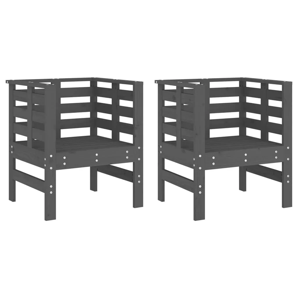 2 db szürke tömör fenyőfa kerti szék 61,5 x 53 x 71 cm