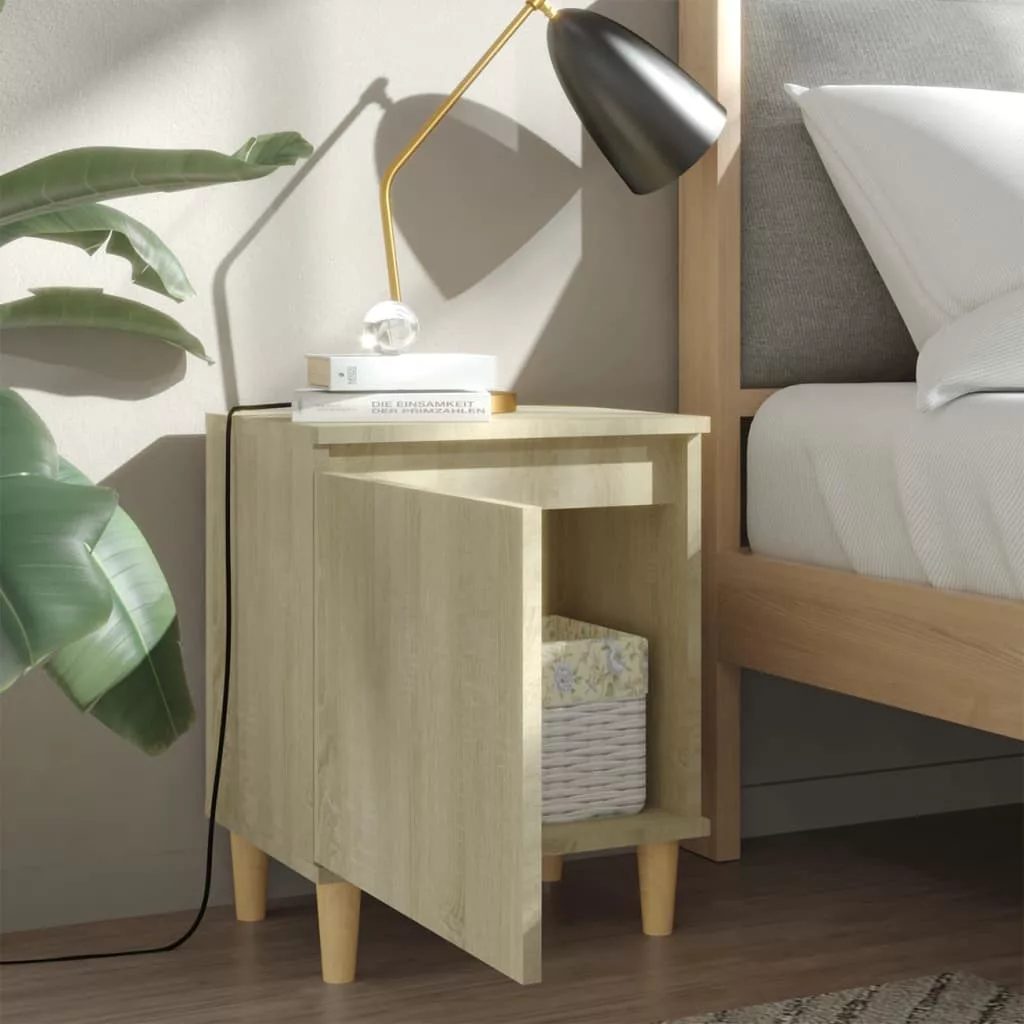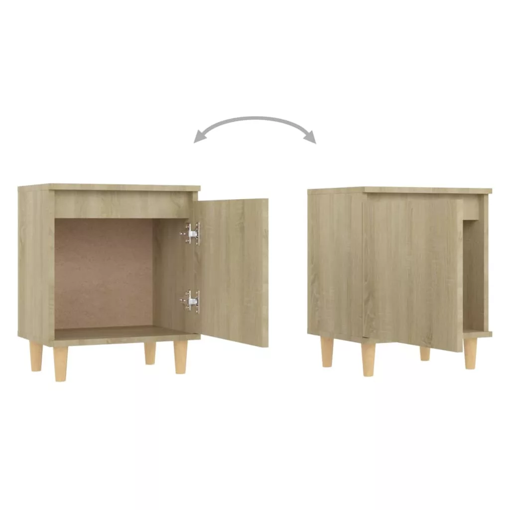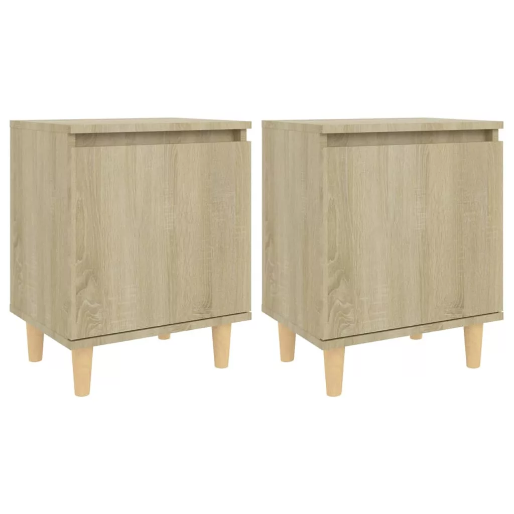 2 db tölgyszínű éjjeliszekrény tömör fa lábakkal 40x30x50 cm