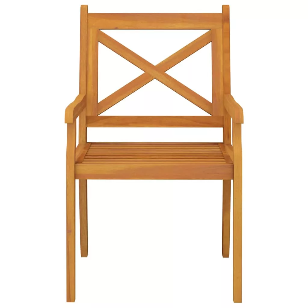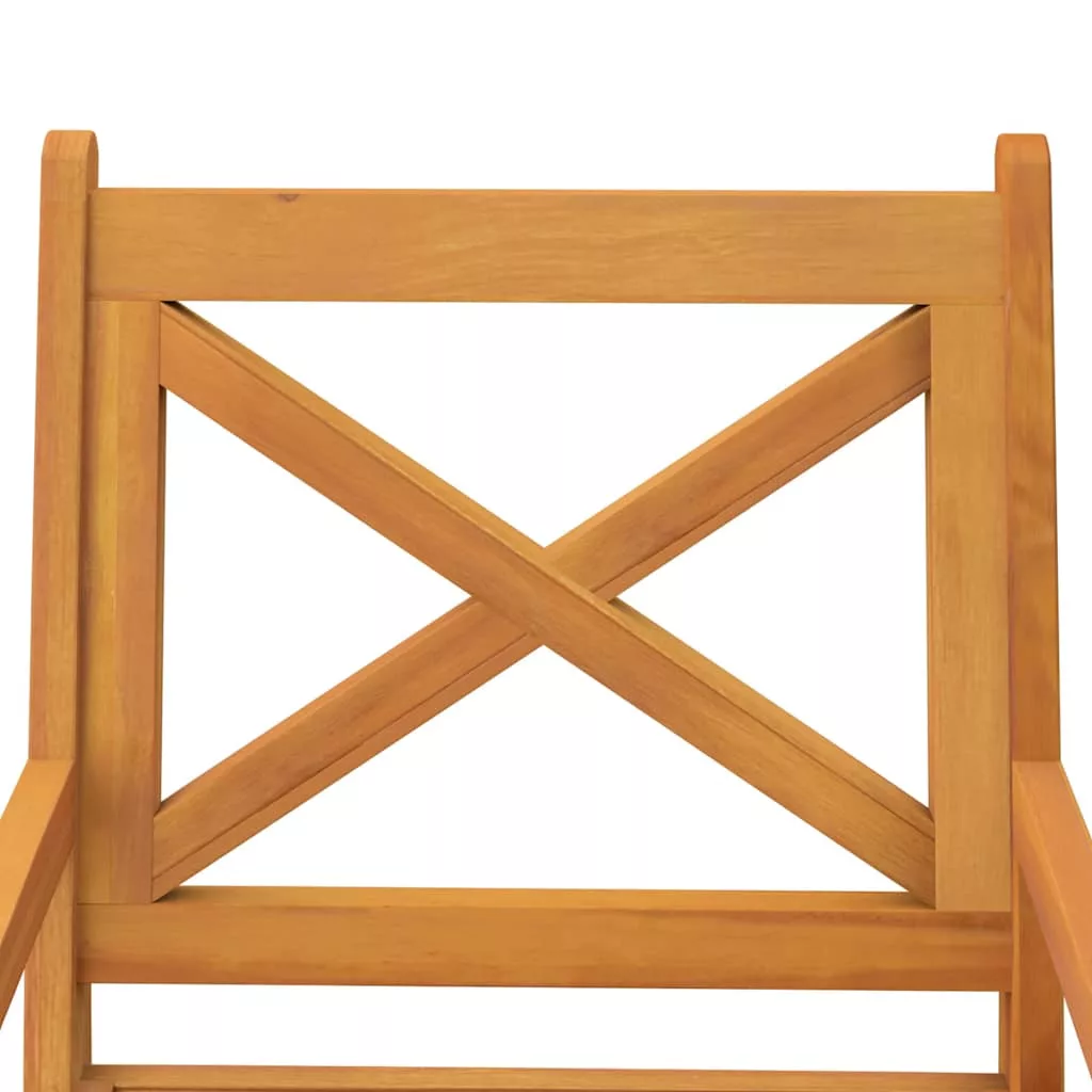 Ezek a fából készült kültéri étkezőszékek kiválóak a szabadban történő étkezésekhez a kertjében vagy az udvarán! Tömör akácfa: A tömör akácfa egy gyönyörű, természetes anyag. Az akácfa egy trópusi keményfa, amely sűrű erezetű, stabil és tartós.Praktikus kartámasz: Az ebédlőszékek karfái kényelmesebbé teszik az ülést.Elegáns kialakítás: Ezek a keresztezett rácsos háttámlájával és lécezett ülőfelülettel ellátott székek környezetük központi elemei lesznek. Megjegyzés:Kerti bútora élettartamának meghosszabbítása érdekében javasoljuk, hogy védje vízálló takaróval. Maximum 110 kg ülésenként.
