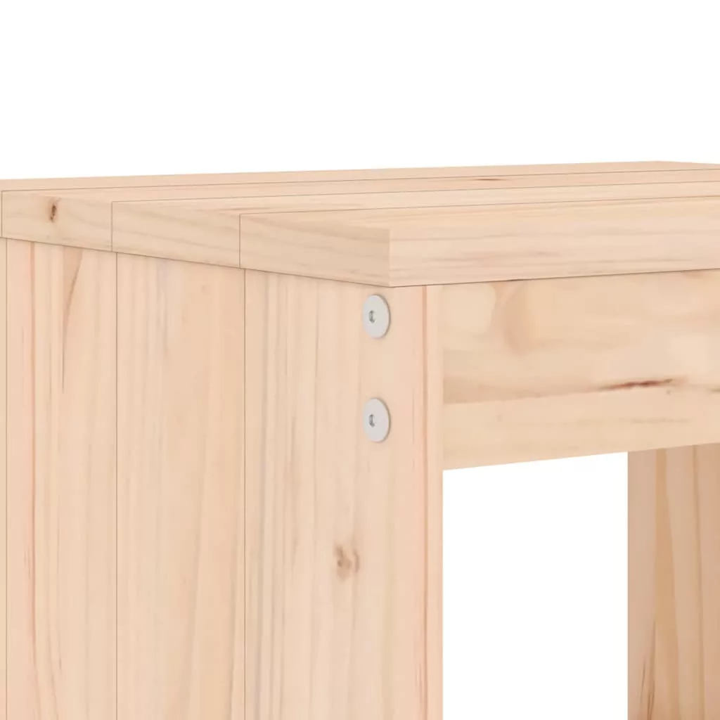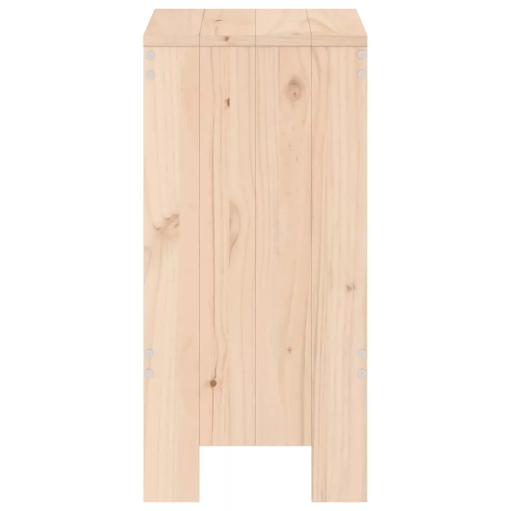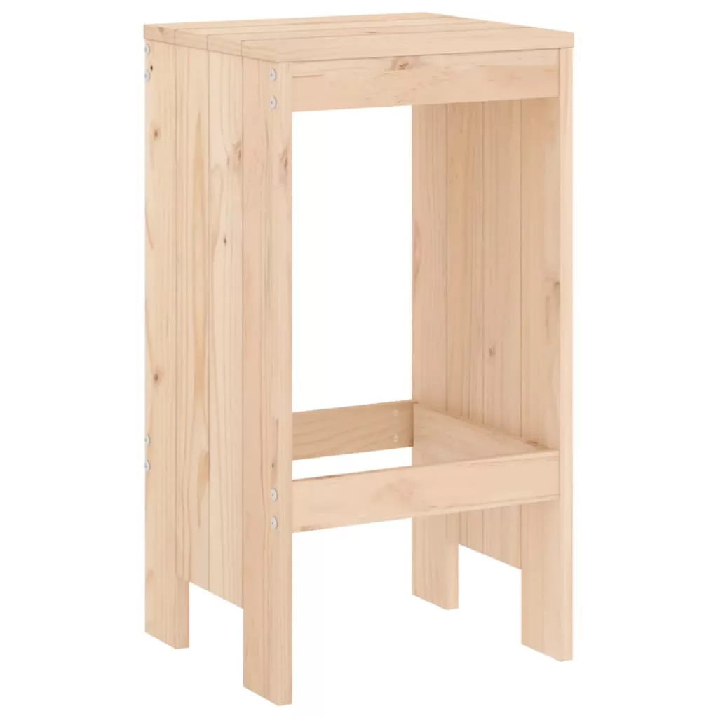 Ezek a fából készült bárszékek rusztikus bájt árasztanak, és hívogató hangulatot kölcsönöznek teraszának vagy erkélyének. Tömör fenyőfa: A tömör fenyőfa egy gyönyörű természetes anyag. A fenyőfa egyenes erezetű, a csomók pedig jellegzetes, rusztikus megjelenést biztosítanak az anyagnak. A tömör fenyőfából készült székek tartósak kültéri használatra.Ésszerű kialakítás: A szék ülőmagassága 75 cm, ami a legtöbb ember magasságának megfelelő. Legyen szó evésről vagy beszélgetésről, kényelmes élményben lehet része.További kényelem: A fából készült bárszék lábtámasza extra helyet biztosít a lábak ellazításához. Jó tudni:A kültéri bútor szépségének megőrzése érdekében javasoljuk, hogy vízálló huzattal fedje be. Maximum 110 kg ülésenként.