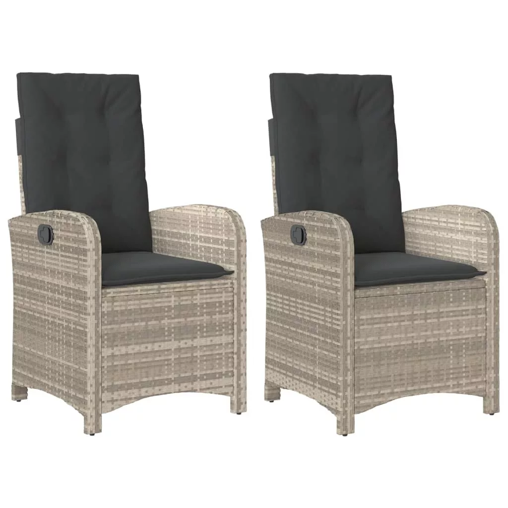 2 db világosszürke polyrattan dönthető kerti szék párnákkal