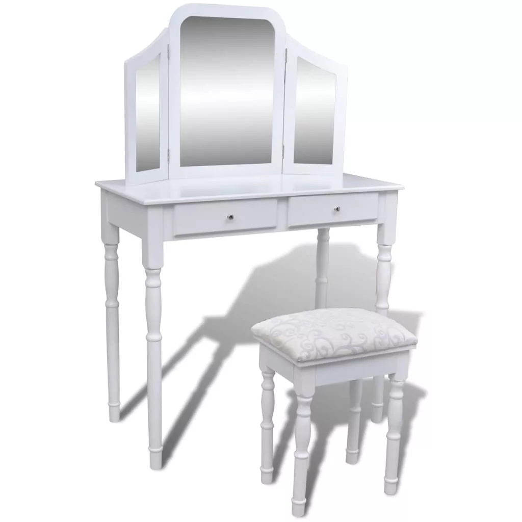 2 fiókos fehér fésülködőasztal 3 az 1-ben tükörrel, zsámollyal