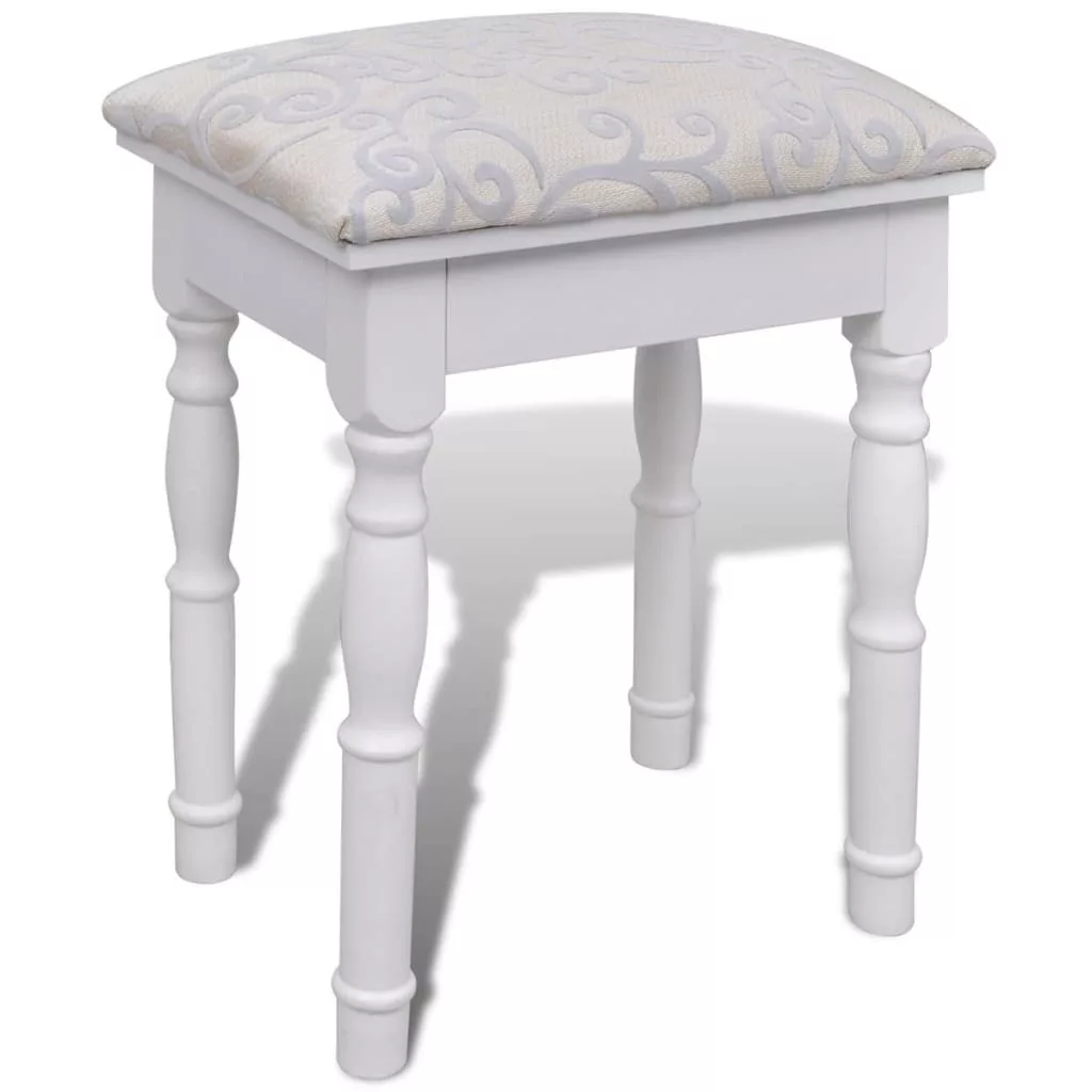 Ez az elragadó fésülködőasztal és zsámoly szett kiváló minőségű fenyőfából készült. Viktoriánus stílusa és tiszta fehér felülete eleganciát és szépséget csempész budoárjába vagy öltözőjébe. Egyedülálló kézművesmunka terméke, mely tovább növeli az asztal és zsámoly szett szépségét. Ez egy 3 az 1-ben asztali tükör, 2 oldaltükörrel, mely strapabíró zsanérjainak köszönhetően, könnyen behajtható. Meglepő módon a tükörkeret és az asztal külön is használható. Két elegáns fiókja további helyet biztosít ékei, kozmetikumai és egyéb személyes holmijai számára. Ez a fésülködőasztal és zsámoly szett bárhová is kerül, magára vonzza a tekinteteket. Könnyen összeszerelhető a mellékelt szerelési tartozékokkal.