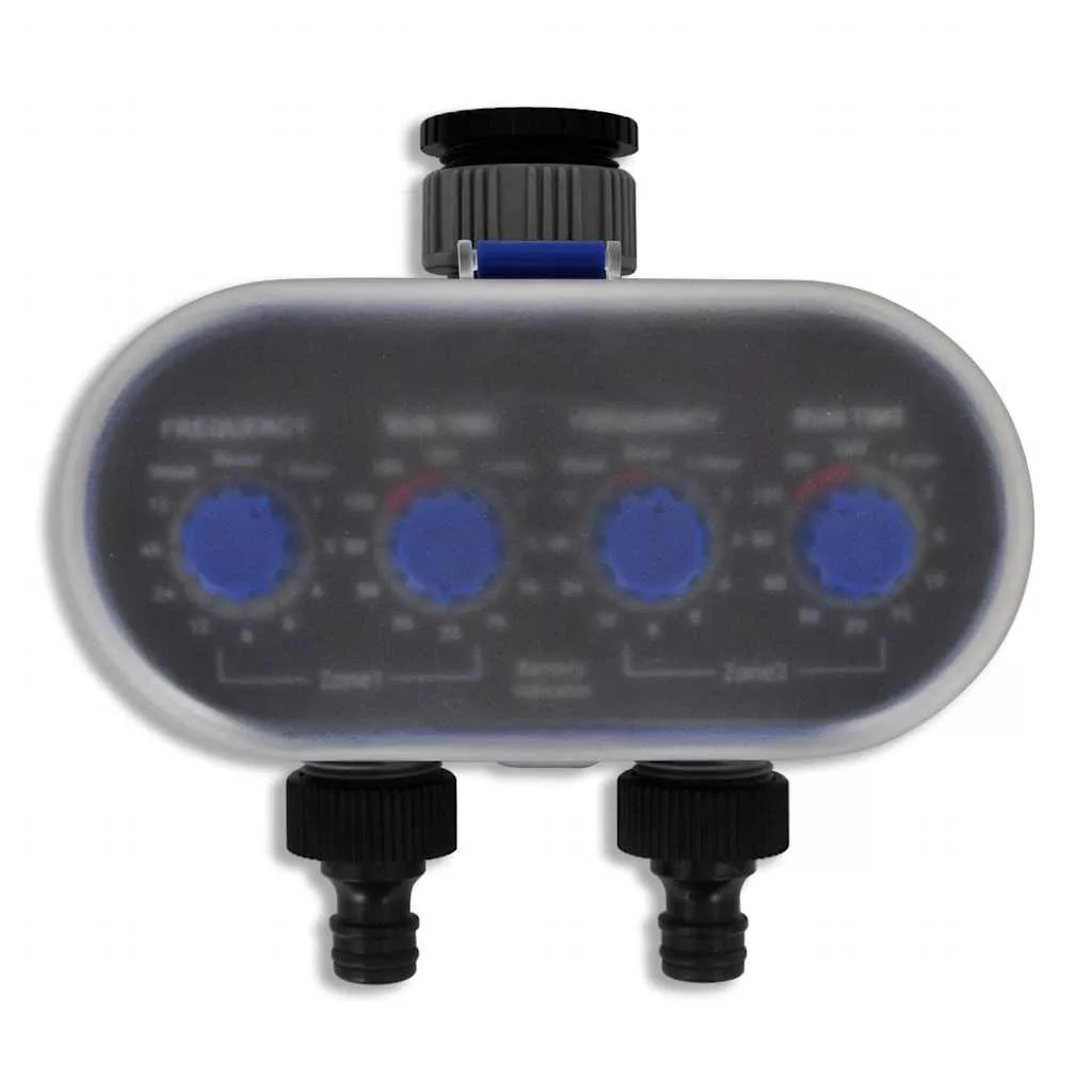 Ez a kerti automata öntözésidőzítő lehetővé teszi a kert előre tervezett, rendszeres öntözését. Ideális nyáron történő használatra, amikor a növények és a fű gyakori öntözést igényel.Ezzel az automatikus öntözési rendszerrel rendelkező kerti automata vízidőzítő vizet és időt takarít meg. Két öntözésvezérlő gombkészletet tartalmaz, amelyek lehetővé teszik a kert két részének egyidejű öntözését. Mindegyik egyszerűen beállítható két tárcsakerékkel: az egyik a ciklusidőhöz, a másik pedig az öntözési időhöz.Ez az ABS-ből készült vízidőzítő víz- és korrózióálló, így hosszú élettartamot biztosít. Ezt az időzítőt csak kültéri használatra tervezték öntözőberendezések vagy öntözőrendszerek vezérlésére. A berendezés nem használható ipari célokra, például élelmiszerekre, vegyszerekre és növényvédő szerekre.