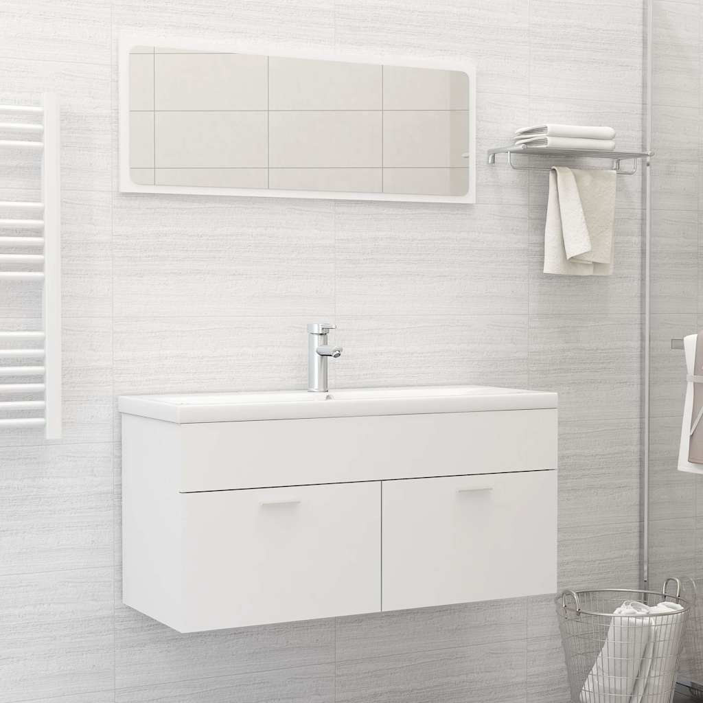 2 részes fehér szerelt fa fürdőszobai bútorszett
