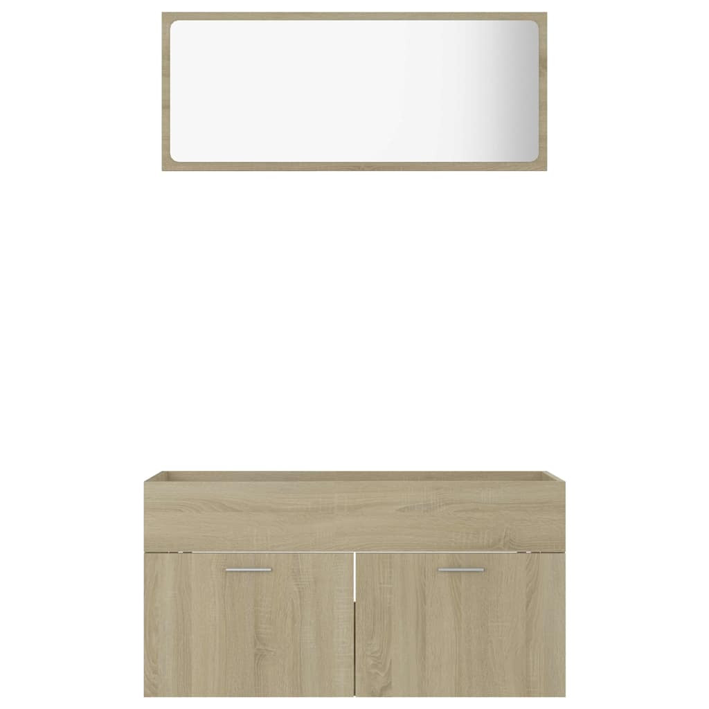 2 részes sonoma tölgy színű szerelt fa fürdőszobai bútorszett