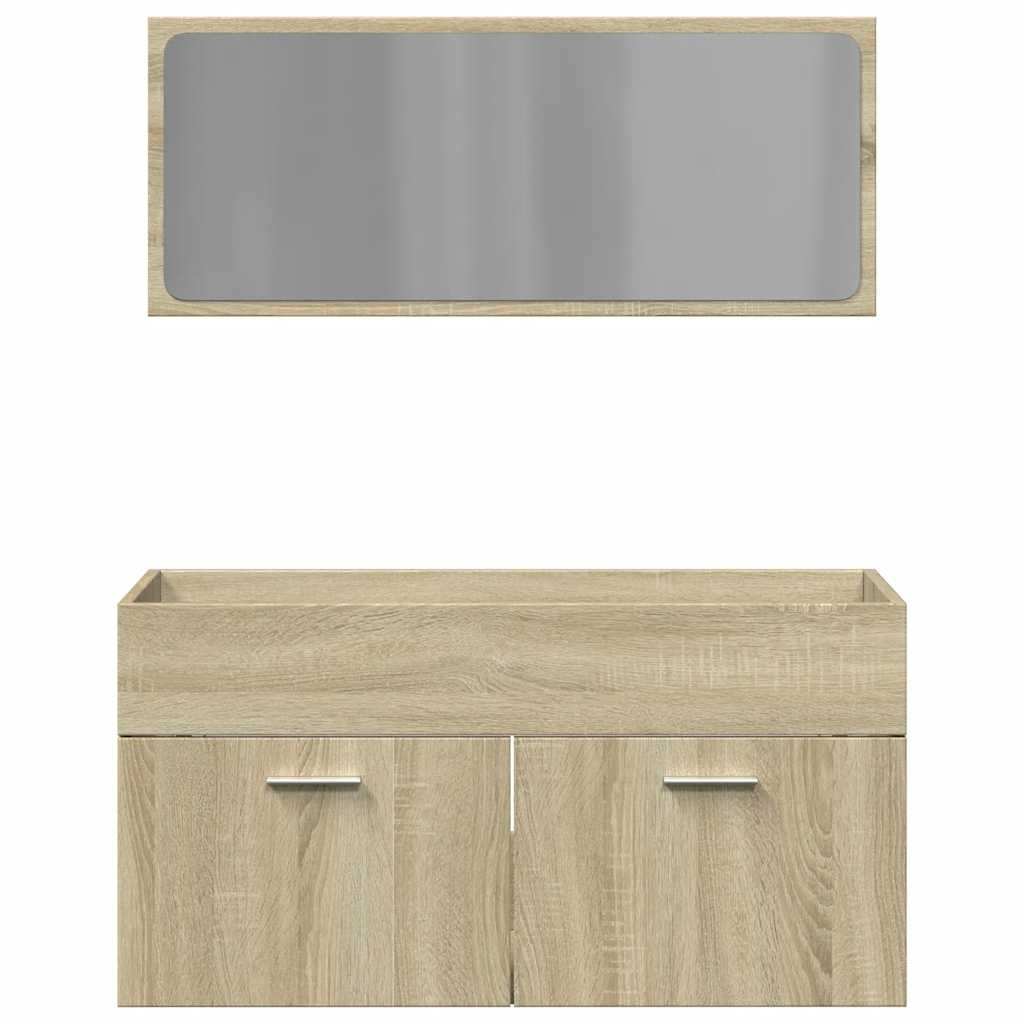 2 részes sonoma tölgyszínű szerelt fa fürdőszobai bútorszett