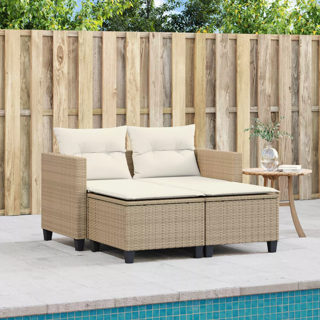 2 személyes bézs polyrattan kerti kanapé zsámollyal