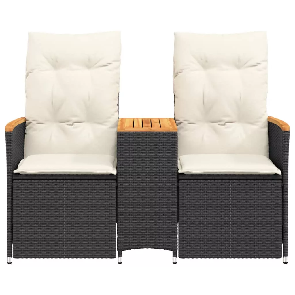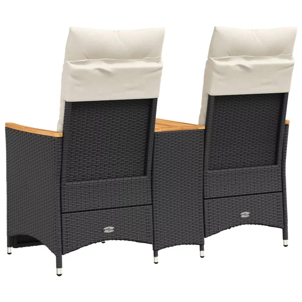 2 személyes fekete polyrattan dönthető kerti kanapé asztallal