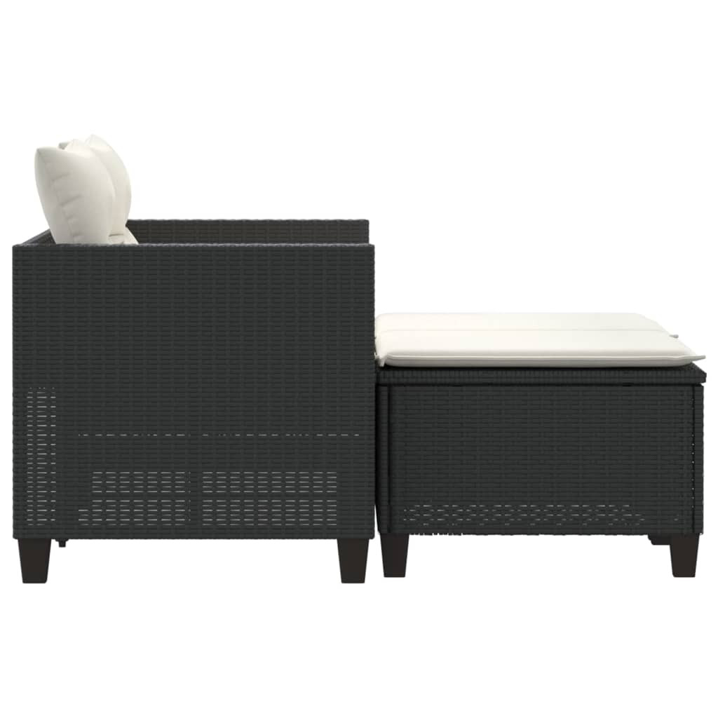 2 személyes fekete polyrattan kerti kanapé zsámollyal