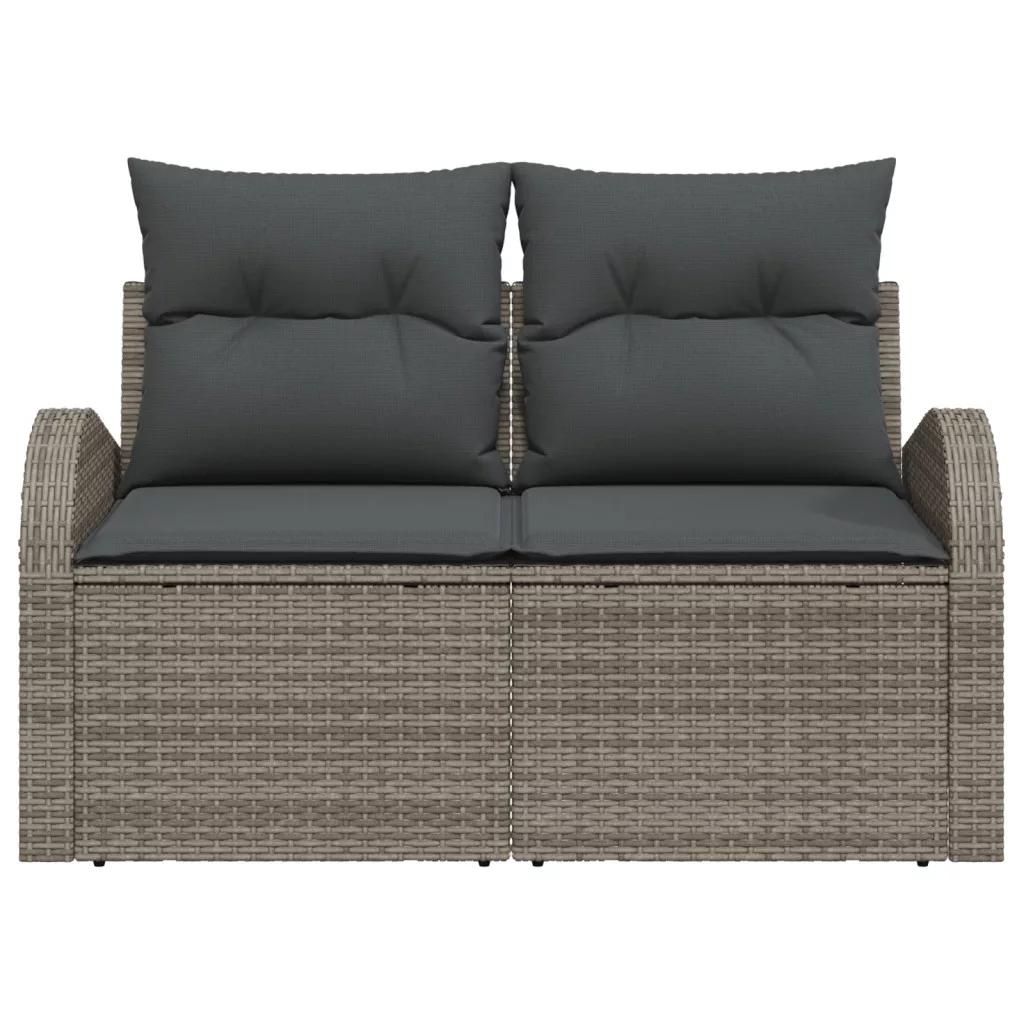 2 személyes kerti kanapé tárolóval és párnákkal, szürke poli rattan