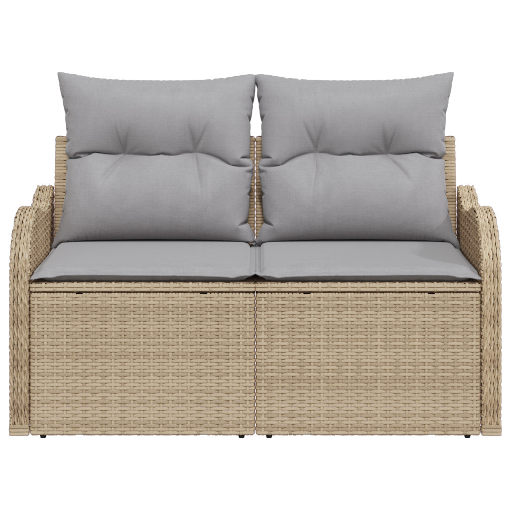 2-személyes kertibútor tárolóval és párnákkal bézs polirattan