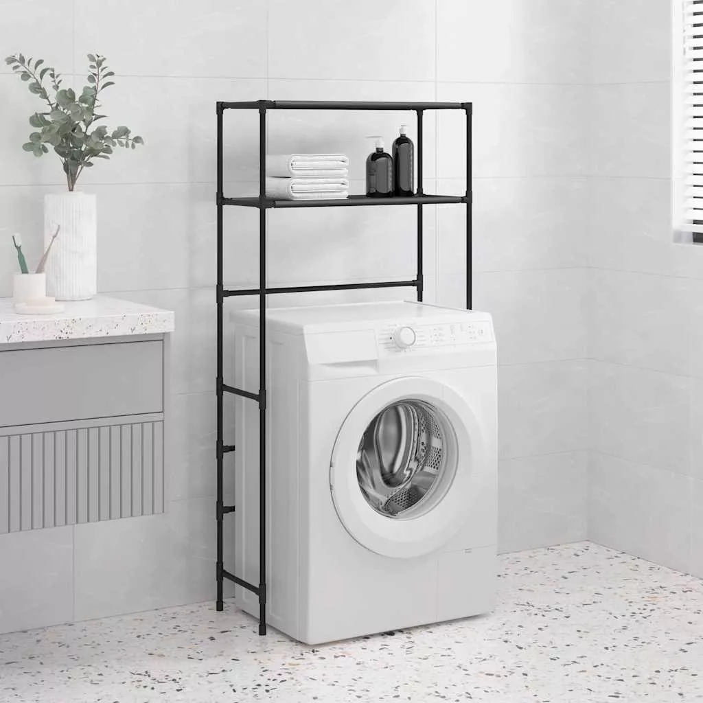 2 szintes fekete vas mosógép feletti tárolóállvány 69x28x143 cm