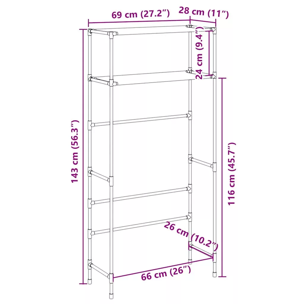 2 szintes szürke vas mosógép feletti tárolóállvány 69x28x143 cm