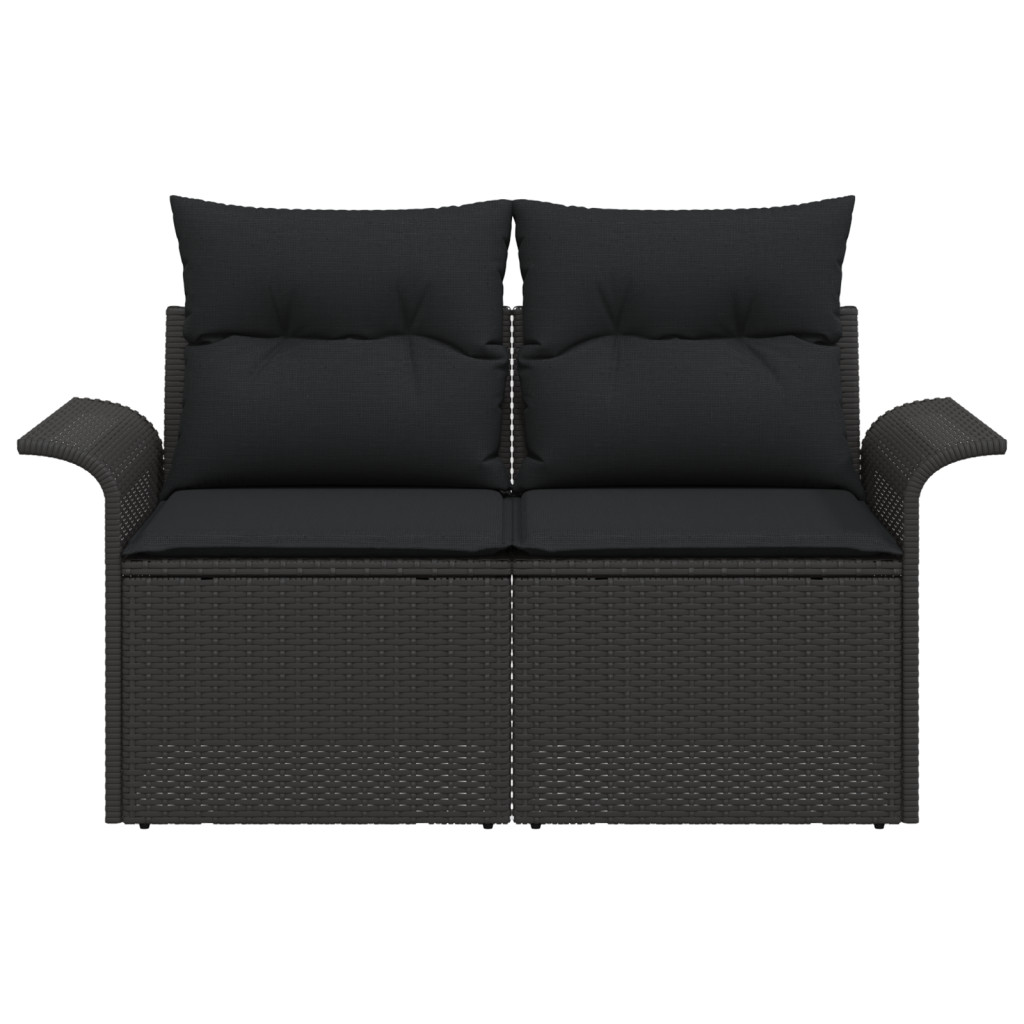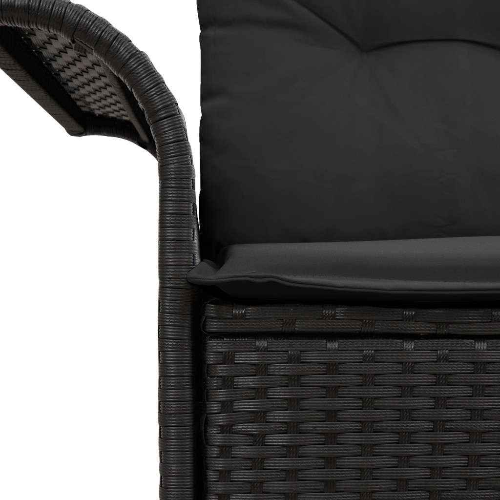 2-üléses Kerti Kanapé Tárolóval & Párnákkal Fekete Poli Rattan