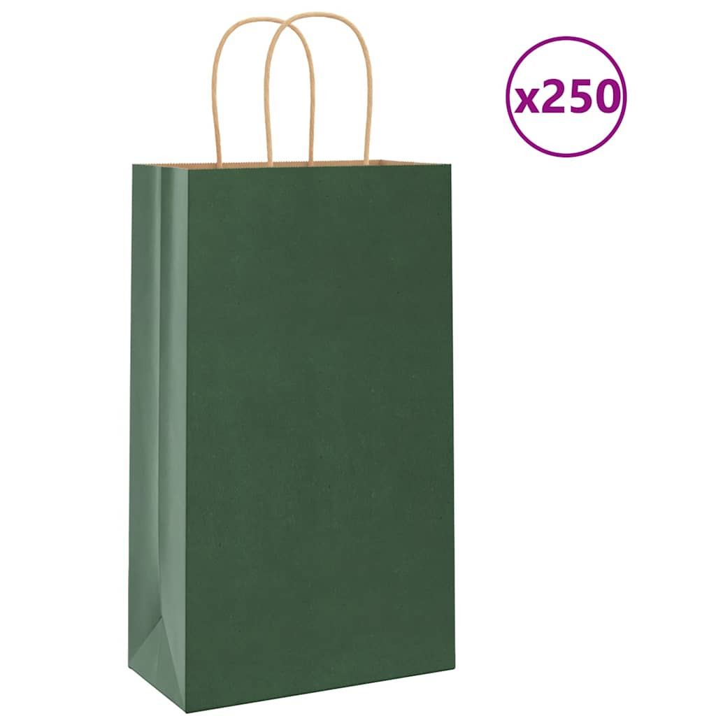 250 db zöld papírzacskók fogantyúkkal 21x11x36 cm