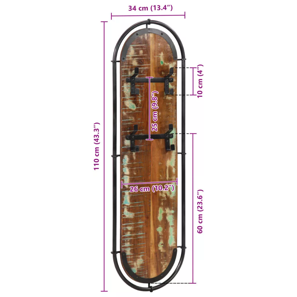 Tartsa rendben az előszobát, a nappalit vagy más helyiséget ezekkel a falra szerelhető ruhafogasokkal! Robusztus és stabil: A tömör újrahasznosított fa újból felhasznált faanyagokból, például tíkfából, mangófából, fenyőfából vagy bükkfából áll. Ezeket a faanyagokat régi épületekből, például gyárakból, fészerekből és hajókból hasznosítják újra. A kopás jelei és a látható faerezet minden bútordarabnak saját történetet és egyedik megjelenést kölcsönöz.Praktikus akasztók: A kabáttartó 4 vas akasztóval van felszerelve táskák, kabátok, esernyők, kulcsok stb. felakasztására, amivel sok helyet takaríthat meg a helyiségben.Helytakarékos: Ez a fogas falra szerelhető, így extra tárhelyet biztosít. Ezáltal maximalizálhatja a padlóterületet, és tisztán tarthatja a környezetét. Jó tudni:A falon belüli csavarok és dugók nem alaptartozékok. Azt tanácsoljuk, hogy keressen és használjon kifejezetten az Ön falához megfelelő csavarokat és dugókat. Ha nem biztos benne, konzultálhat egy szakemberrel. Kérjük, olvassa el és kövesse az utasítások minden lépését.Minden termék egyedi, a szín és az erezet változik. A kiszállítás véletlenszerűen történik, biztosítva terméke exkluzivitását és egyediségét.