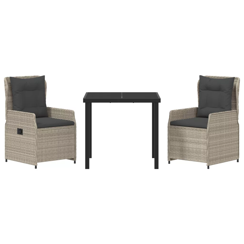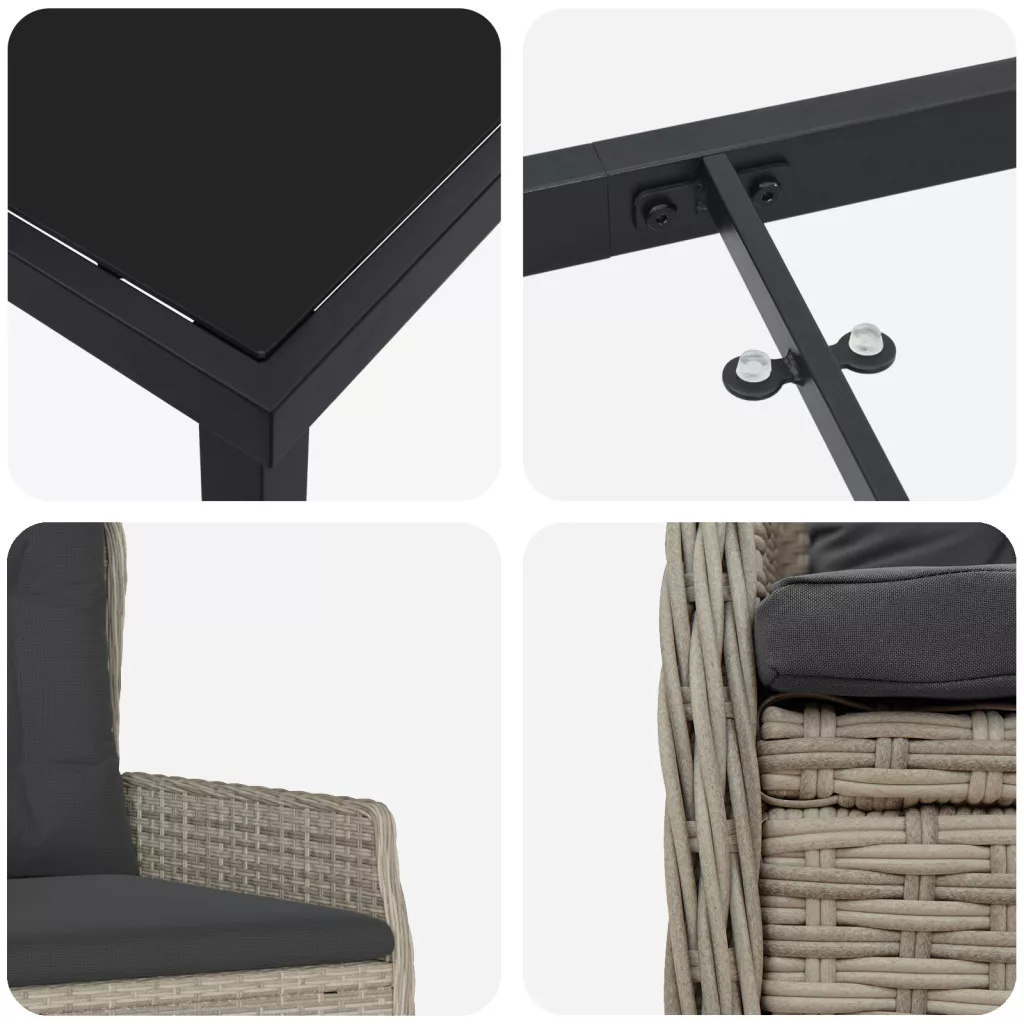 3 Darab Kert Étkező Készlet Világosszürke Poli Rattan