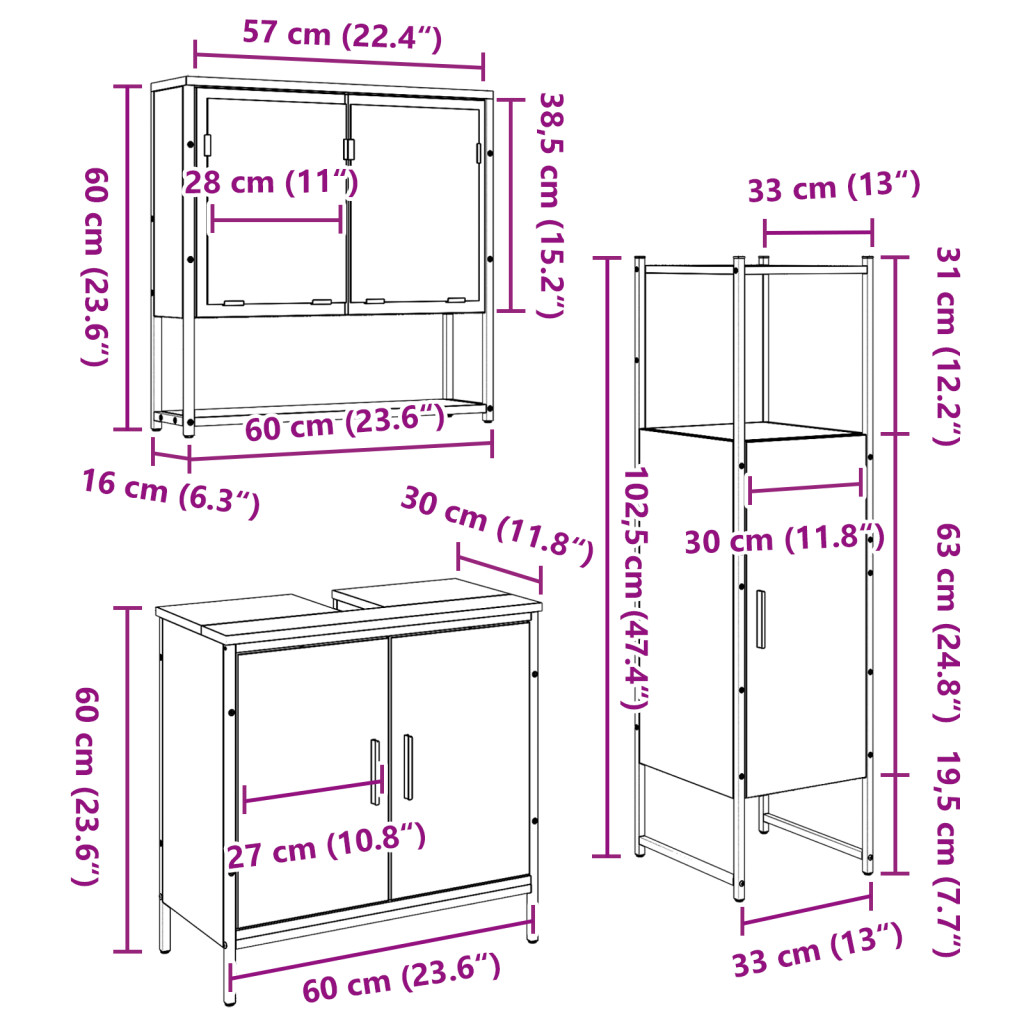 3 Darabos Fürdőszoba Bútor Szett Ipari Tölgy Szerelt Fa