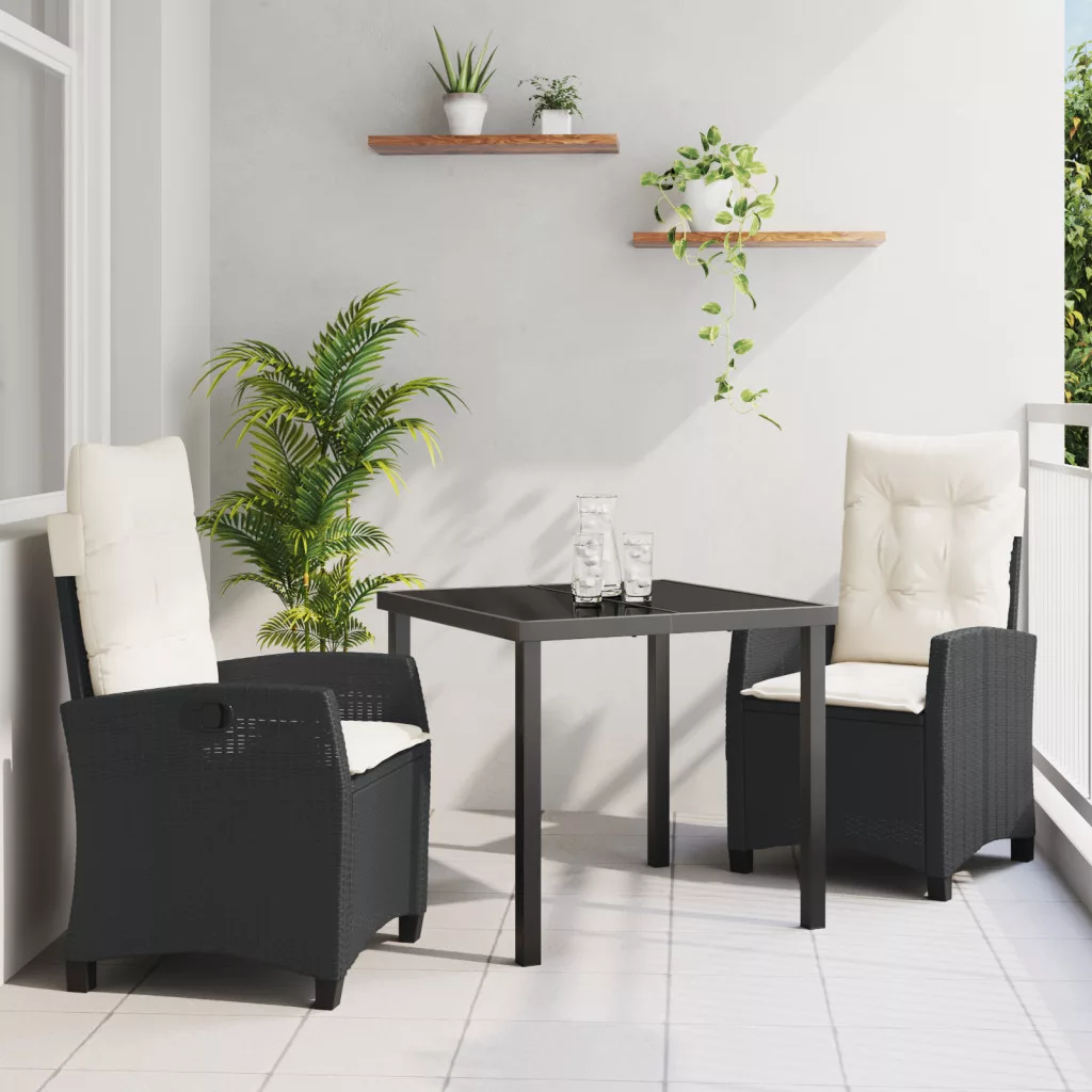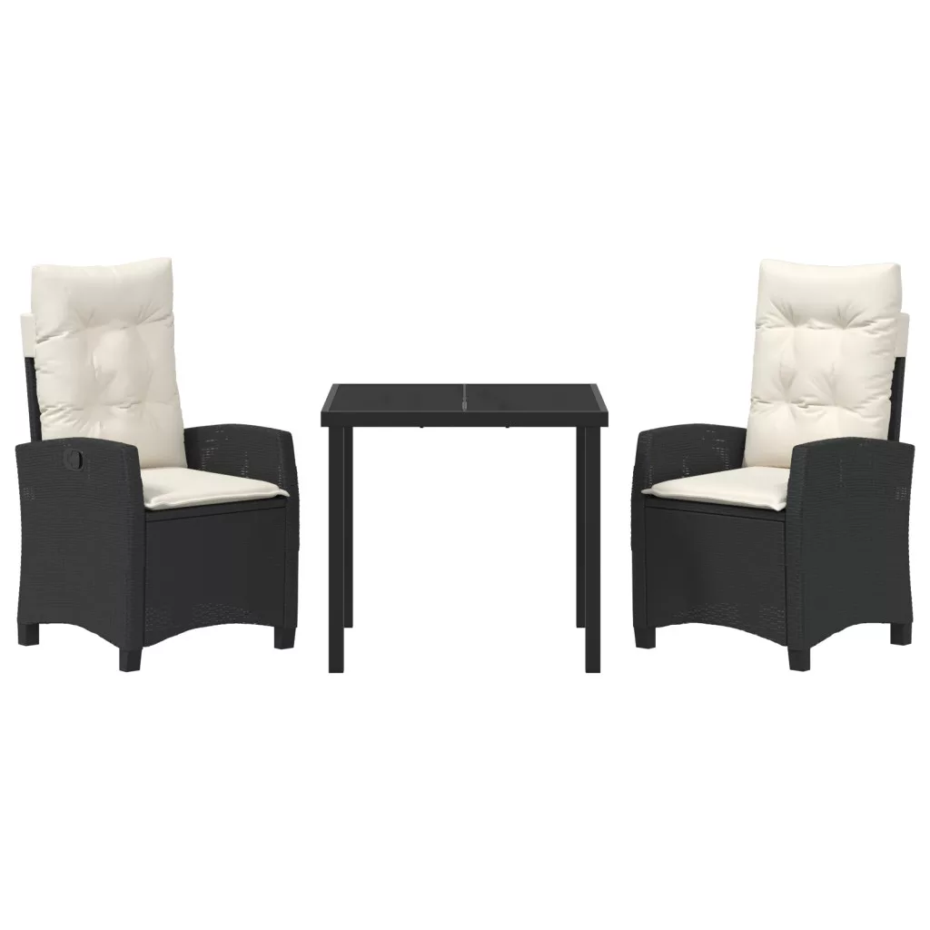 3 Darabos Kerti Étkező Készlet Párnákkal, Fekete Polirattan
