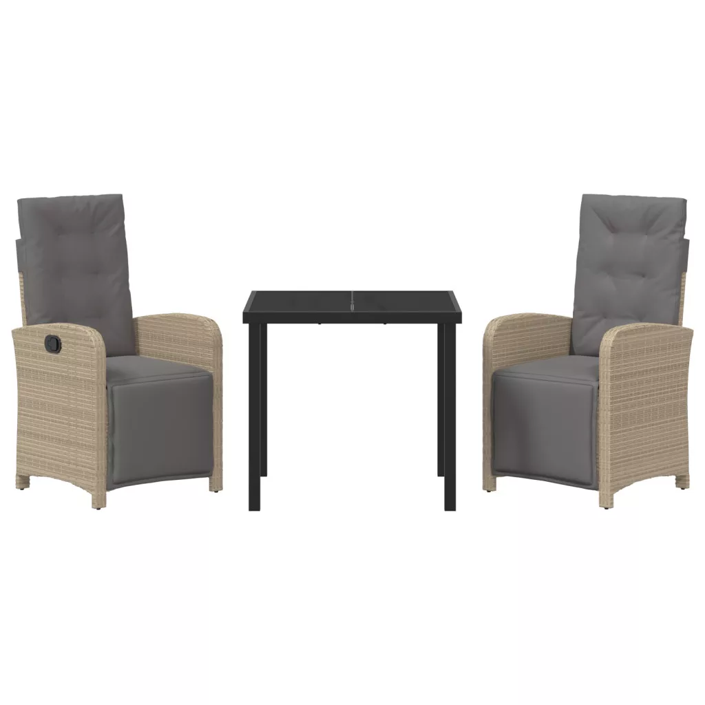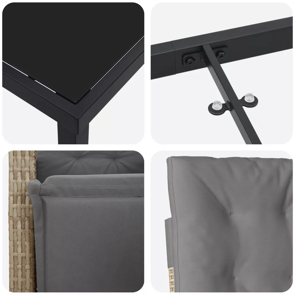 3 Darabos Kerti Étkezőszett Párnákkal Bézs Polyrattan