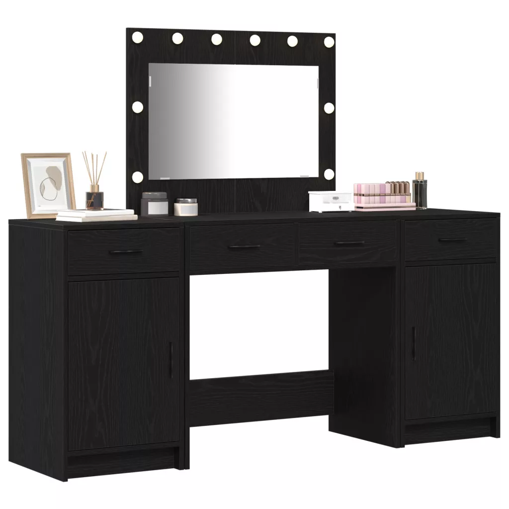 Ez a Kortárs Fekete Tölgy Pipereasztal szett a stílus és praktikum kombinációja. Tökéletes bármilyen hálószobához, beleértve a szép tükört és ügyesen tervezett fiókokat, amik ideálisak sminkeléshez és hajkészítéshez. A gyönyörű fekete tölgy befejezés bármely szobát stílusossá varázsol, modern hátteret adva a napi szépségápolási kihívásokhoz. Két nagy fiókja segít a sminked és kiegészítőid rendszerezésében, megkönnyítve és kényelmessé téve a rutint. A beépített világítás lehetővé teszi a fényerő beállítását, ideális részletes sminkhez vagy egy barátságos fényhez az esti lazulásokhoz. Az egyszerűen tisztítható felület mindig csúcsszinten tartja a pipereasztalodat. Ez a pipereasztal nemcsak stílusos, de praktikus is, így elengedhetetlen darab a hálószobádhoz, legyen szó felnőttről vagy tinédzserről. Kérjük, vegye figyelembe, hogy csak tanúsított DC 5V bemenetet használjon. A magasabb feszültség túlmelegedést okozhat, és károsíthatja a készüléket, valamint túlhevülés és tűz kockázatát jelentheti. Ne csatlakoztassa ezt a terméket semmilyen más tápegységhez, mint amit a kézikönyvben, a névtáblán vagy a vidaXL kifejezetten ajánlott. Ezt a készüléket nem használhatják 14 évesnél fiatalabb gyermekek, valamint csökkent fizikai, érzékszervi vagy mentális képességekkel rendelkező személyek, vagy elektronikai eszközök használatában tapasztalatlan vagy tudás nélküli személyek. Az elektromosság veszélyes. A nem megfelelő telepítés, használat vagy módosítás (egyedi alkatrészek cseréje) a készülék károsodásához vezethet, áramütést és veszélyt okozva a felhasználónak. Ne működtesse ezt a terméket robbanásveszélyes atmoszférában, például gyúlékony folyadékok, gázok és por jelenlétében, vagy 50 Celsius foknál magasabb hőmérsékleten. Ne kapcsolja be a terméket, ha a csatlakozó kábel vagy tápegység láthatóan sérült. Ha a lámpa külső hajlékony kábele vagy vezetékje sérült, azt kizárólag a gyártó vagy annak szervizügynöke, illetve hasonló képesítéssel rendelkező személy cserélheti ki, hogy elkerülje a veszélyt. A telepítés és karbantartás alatt kapcsolja ki az áramot. Győződjön meg arról, hogy a fényforrások lehűltek. Ennek a lámpatestnek a fényforrása nem cserélhető; ha a fényforrás elérte élettartamának végét, az egész lámpát ki kell cserélni. Csak belső használatra, ne használja kültéren.