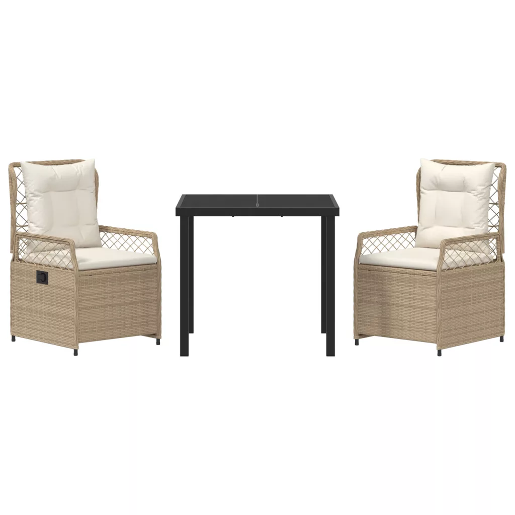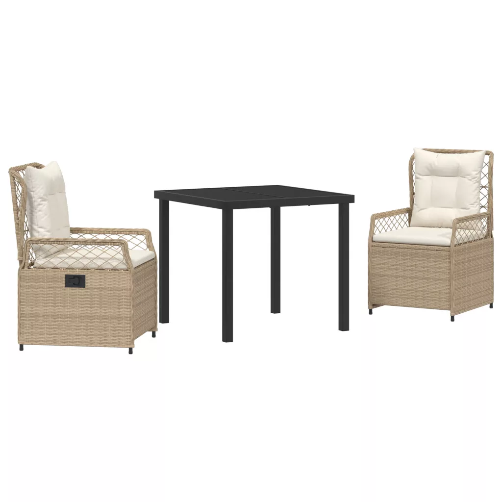 3 Részes Kerti Étkező Szett Bézs Poli Rattan