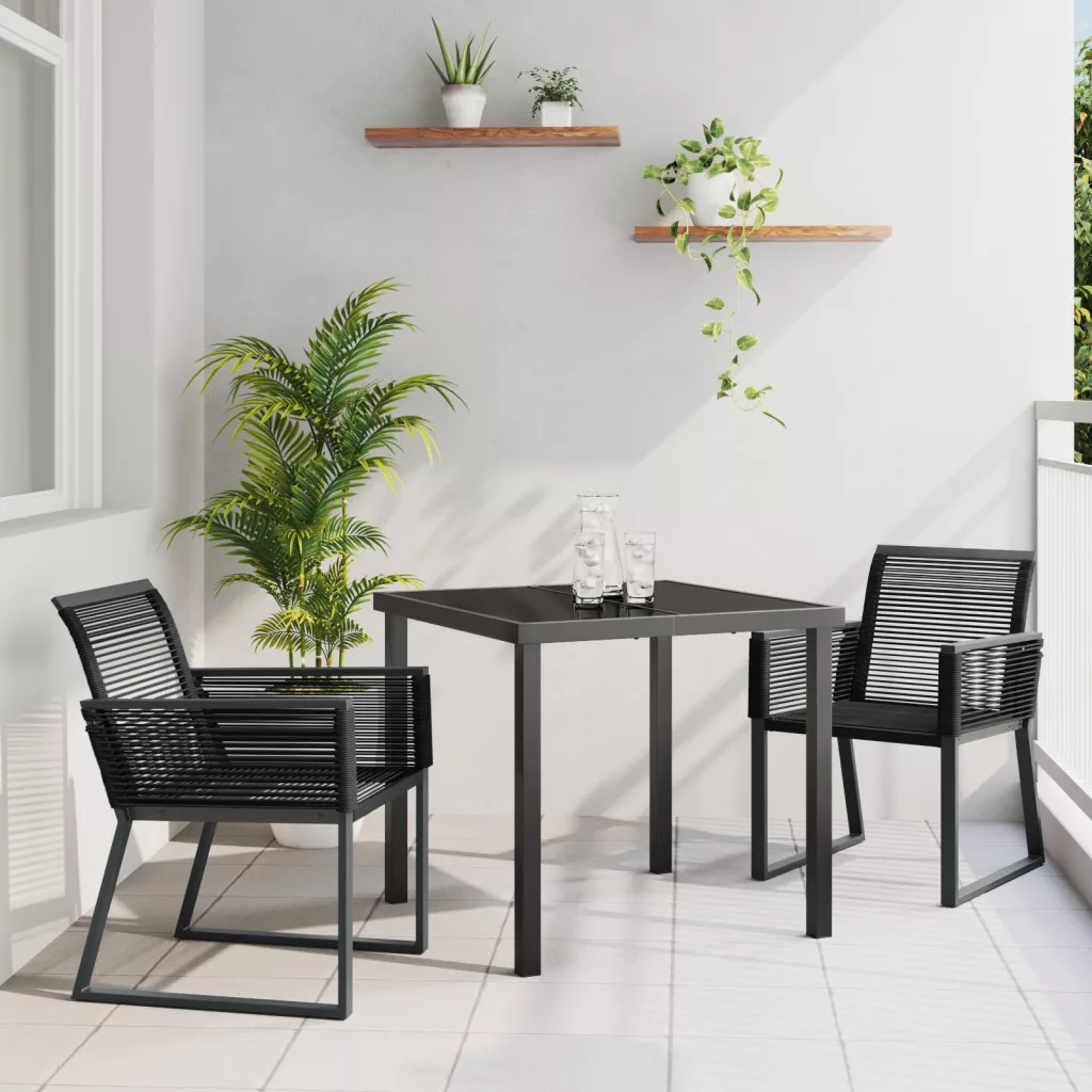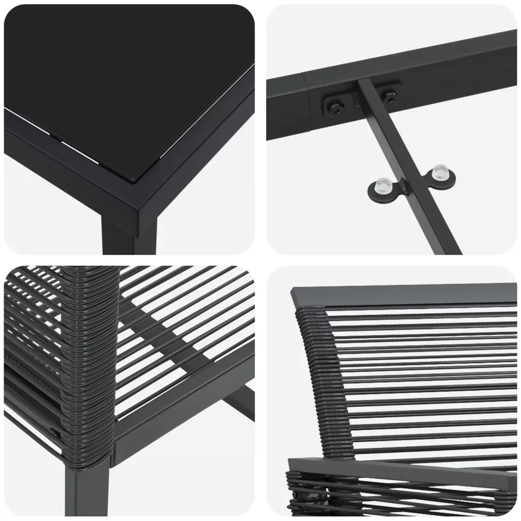 3 Részes Kerti Étkező Szett Fekete Poliratant