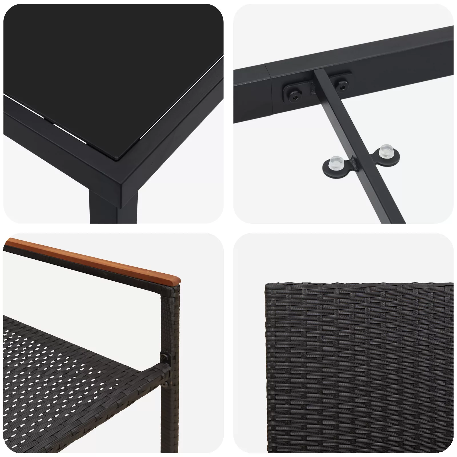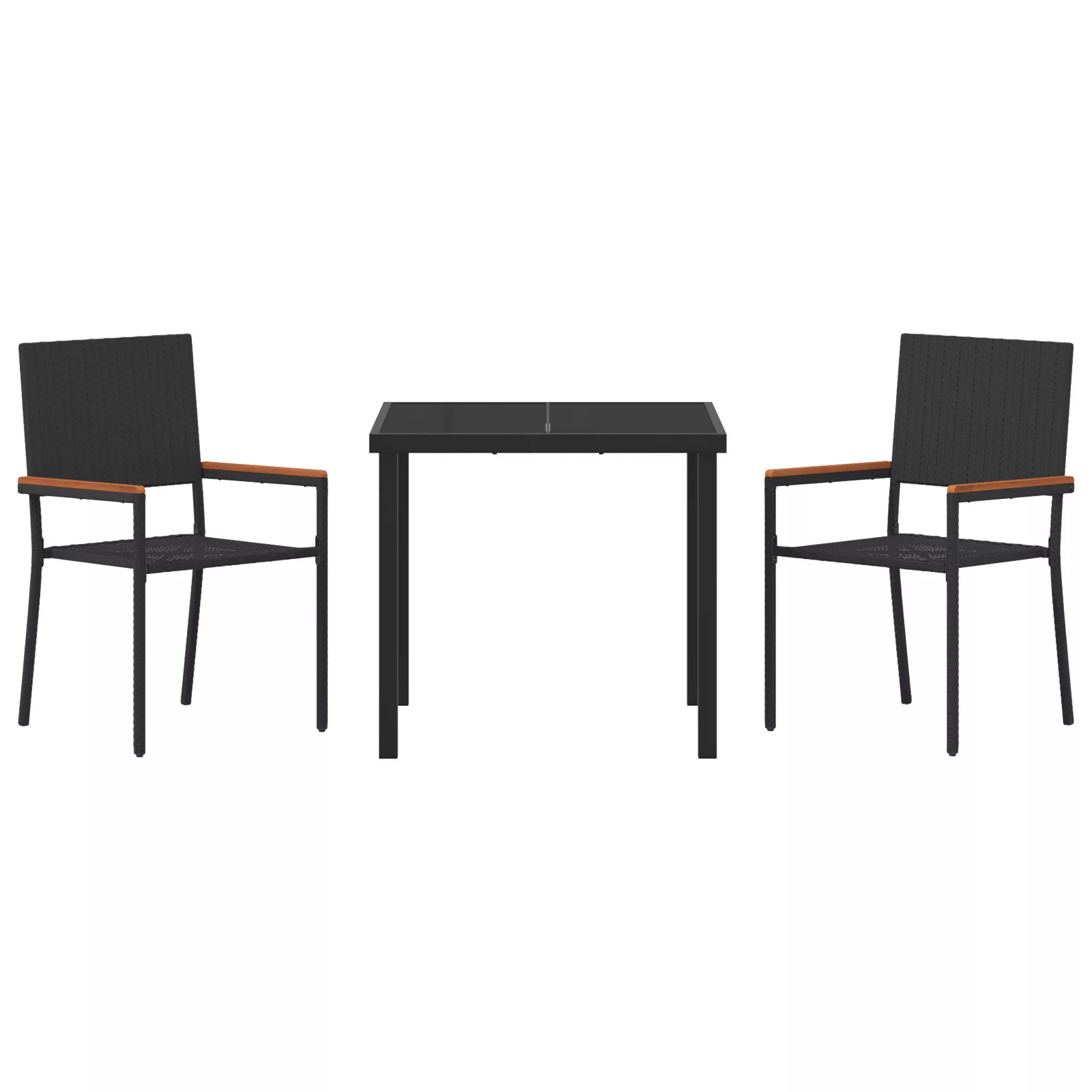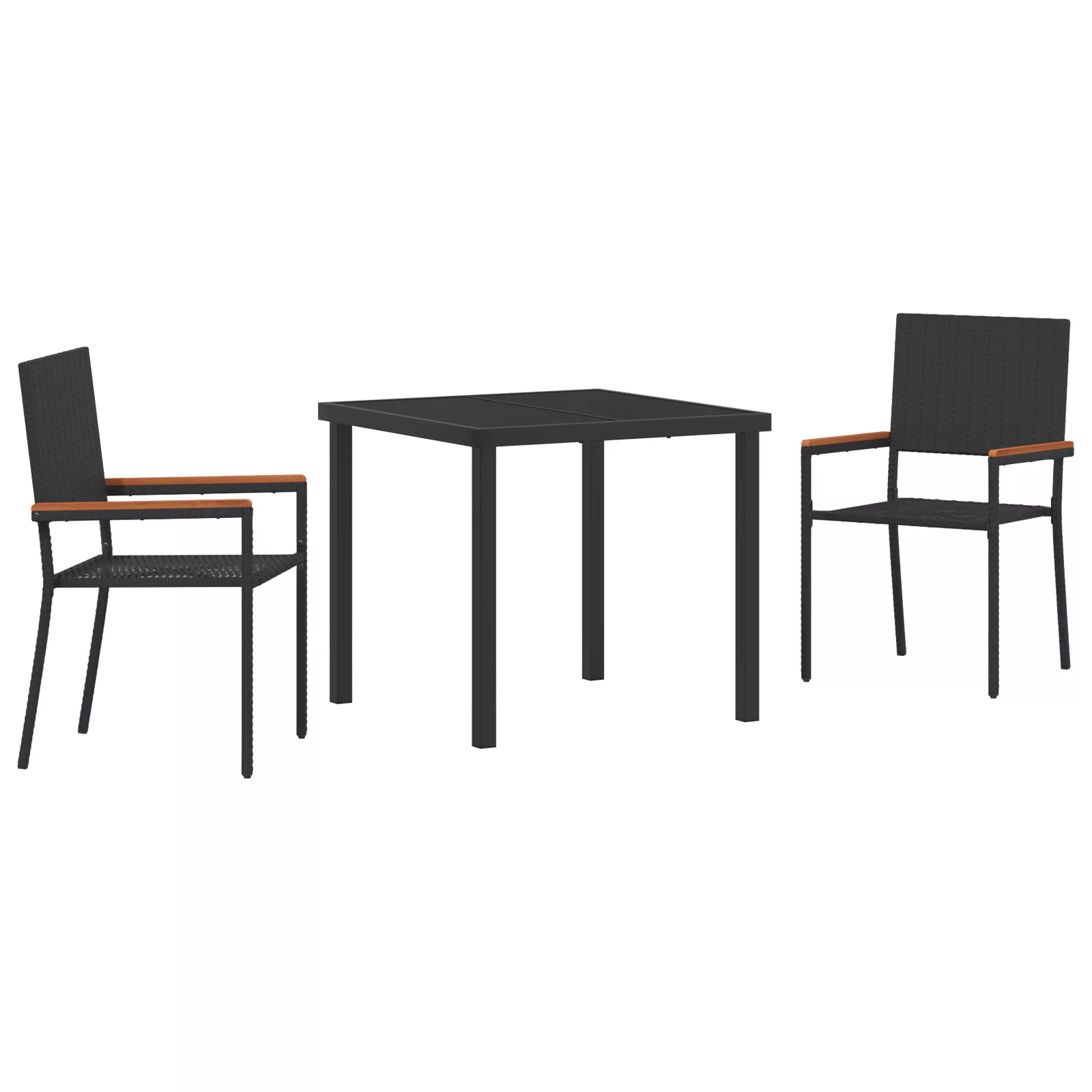 3 Részes Kerti Étkezősor Fekete Poli Rattan