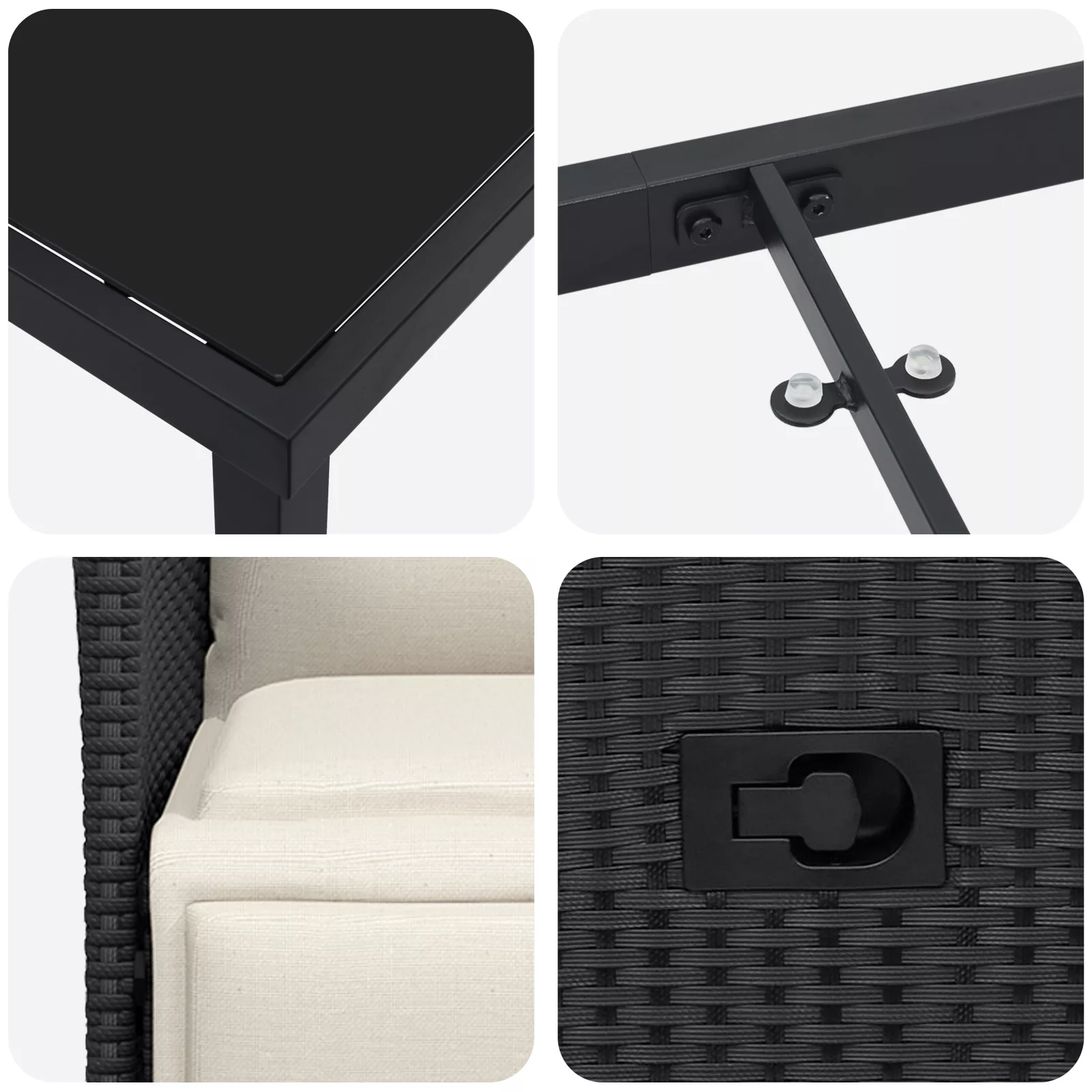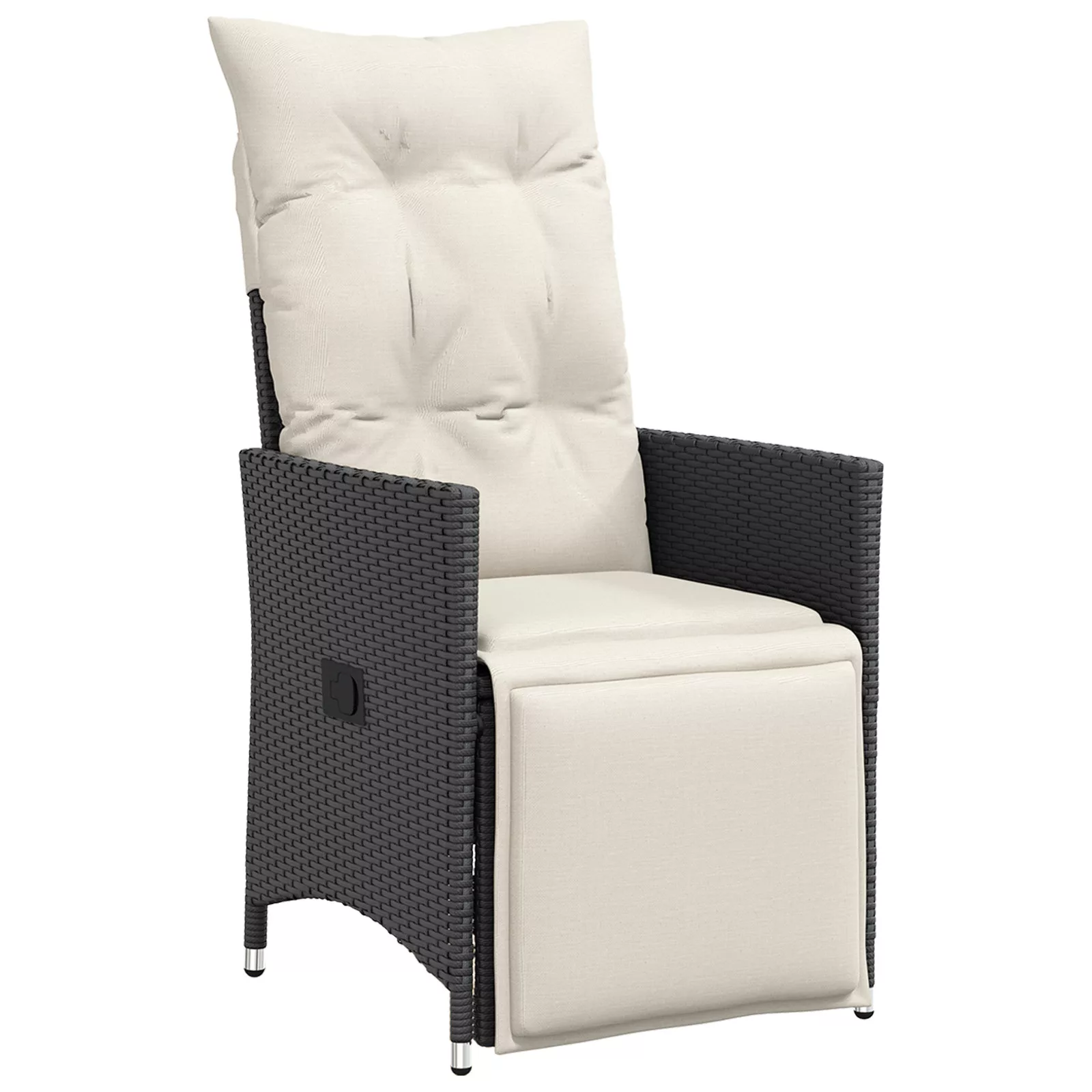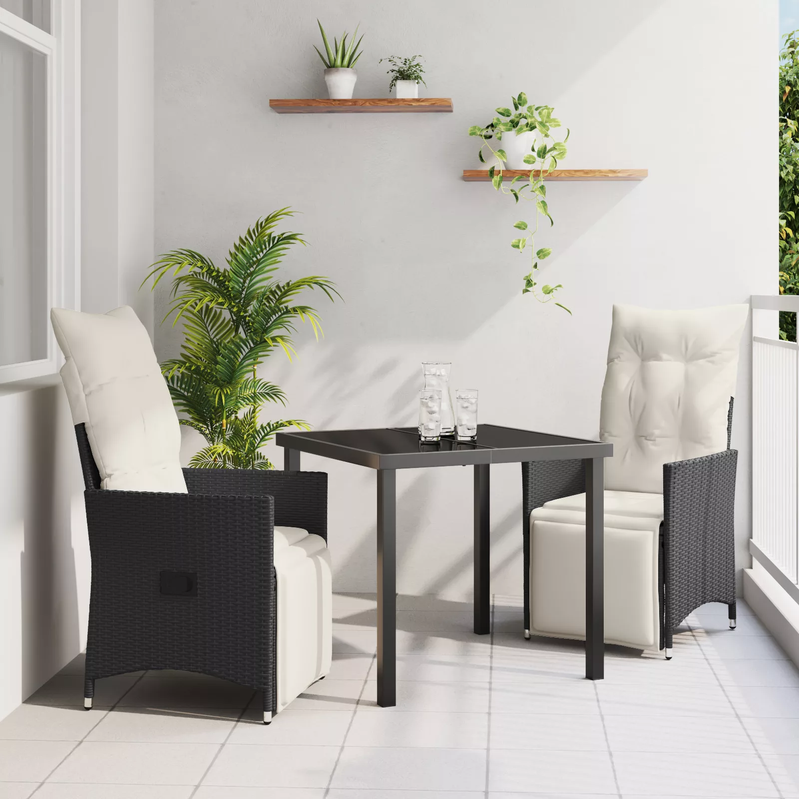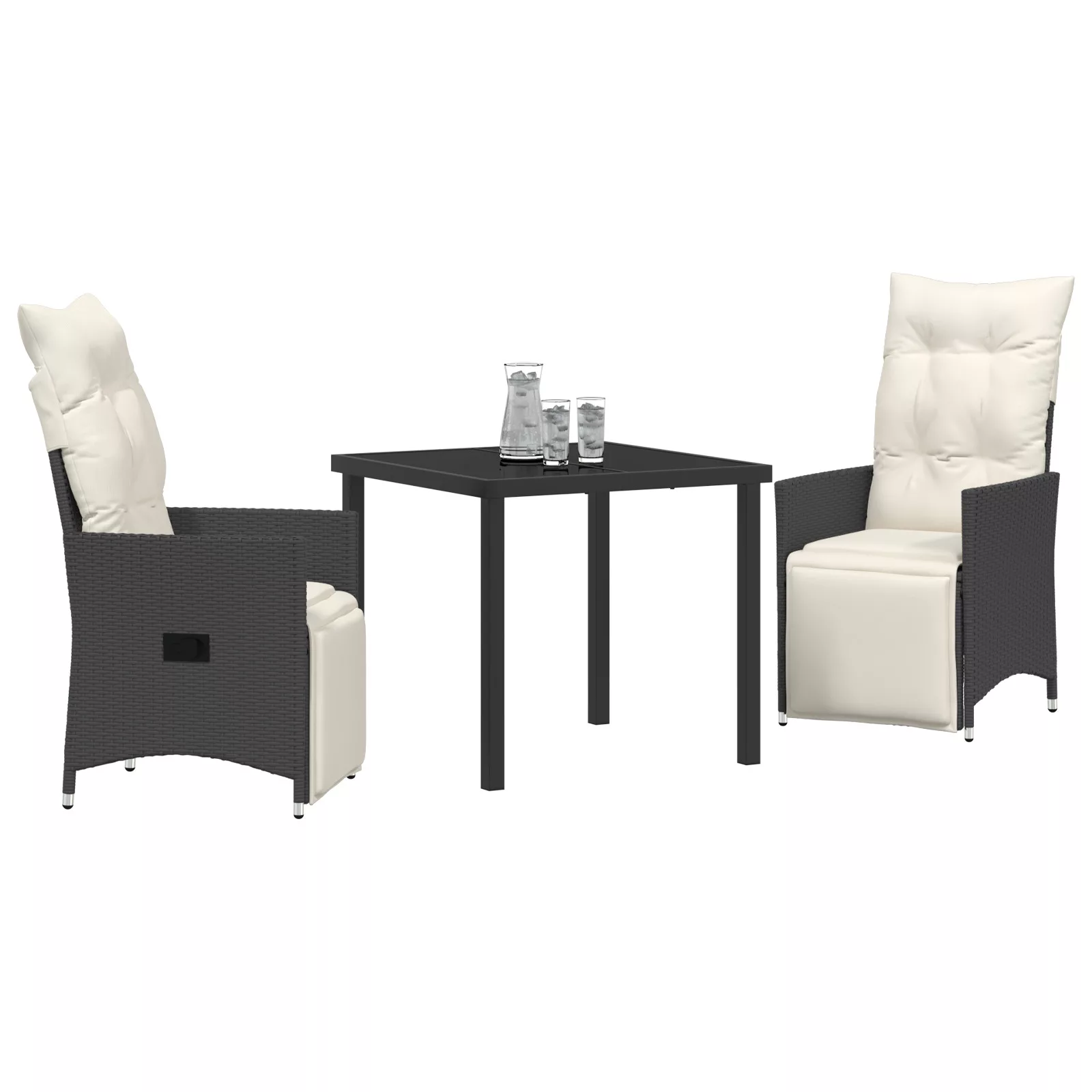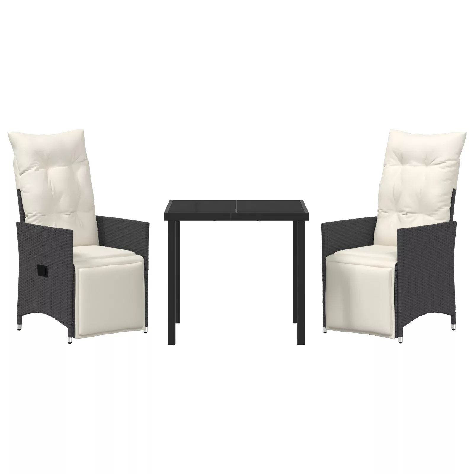 3 Részes Kerti Étkezőszett Párnákkal Fekete Poli Rattan