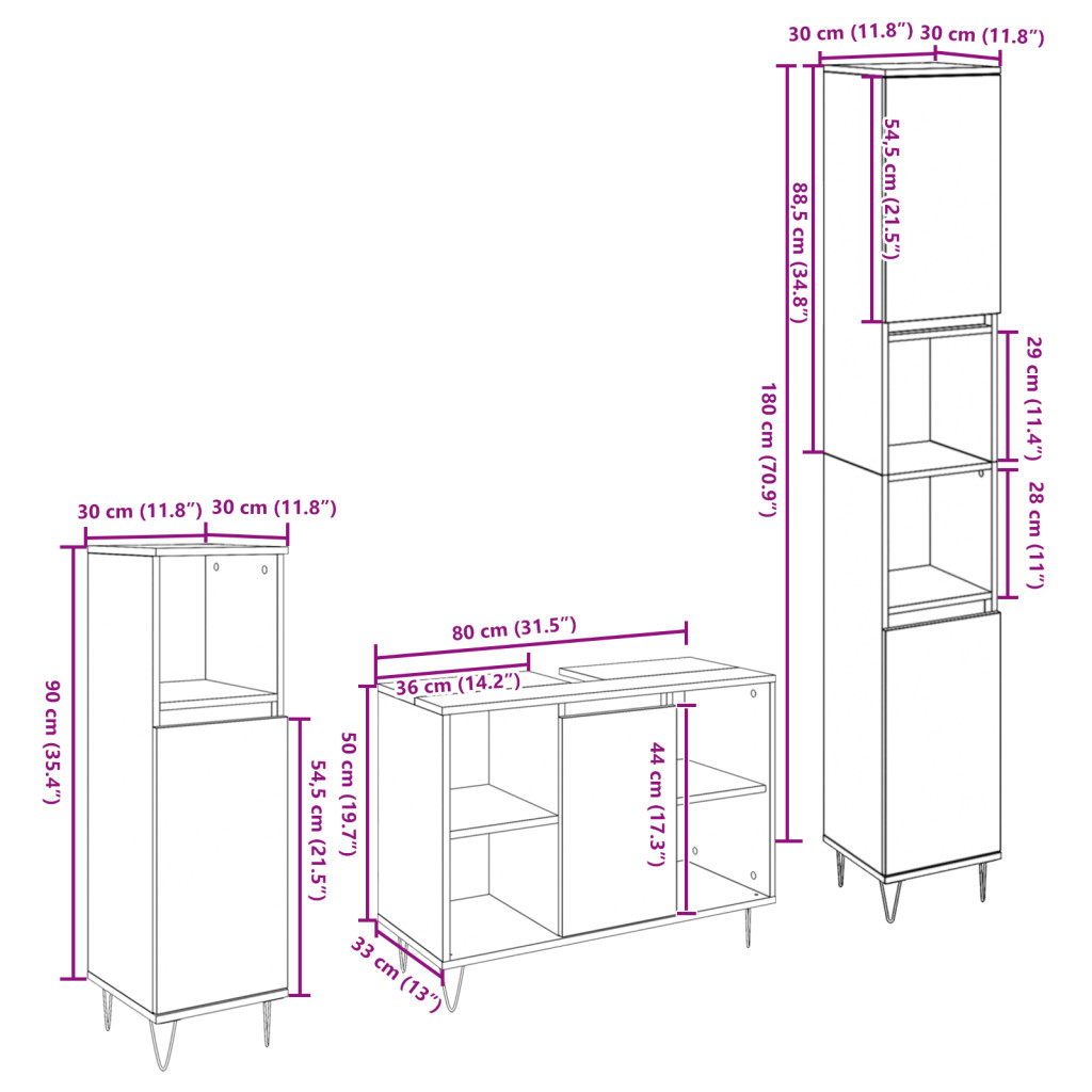 Ez a fürdőszoba bútor szett ötvözi a rusztikus szépséget a funkciónalitással. A tömör újrahasznosított fa régi fa felülete bámulatos és tartós. Fantasztikus megoldás a fürdőszoba rendezésére és megjelenésének feldobására. Rusztikus elegancia: A vintage stílusú felület meleg hangulatot teremt bármely fürdőszobában, otthonos érzést adva. Az egyedi hibák fokozzák a báját, így minden darab egyedi és vonzó bármilyen dekorációhoz. Bőséges tárolás: Rengeteg polccal és szekrénnyel rendelkezik, jól tárolja a piperecikkeket és kiegészítőket, könnyedén megoldva a tárolási igényeket. Ez a bőséges tér segít a tiszta és rendezett környezet kialakításában, így napi rutinod sokkal kellemesebb lesz. Tartós kivitel: Tömör újrahasznosított fából készült, ez a szett hosszú élettartammal bír, tökéletes a mindennapi használatra anélkül, hogy minőségéből veszítene. Ellenáll a kopásnak, megbízható kiegészítője otthonának. Stílusos dizájn: A hajtű lábak ipari hangulatot kölcsönöznek, támogatva a modern érzést, ami jól illeszkedik a vintage és kortárs stílusokhoz is. Könnyű karbantartás: A tisztán törölhető felület és a strapabíró anyag lehetővé teszi, hogy ezt a bútor szettet kipróbálja, és élvezze szépségét anélkül, hogy állandó karbantartással kellene foglalkoznia.