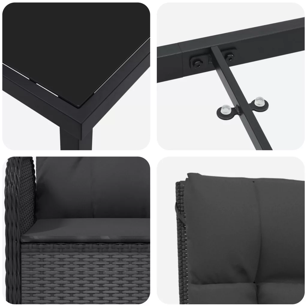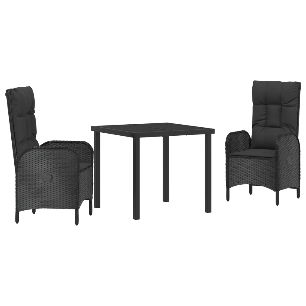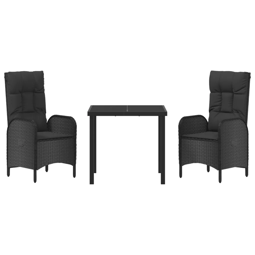 3 darabos Kerti Étkező Szett Fekete Polirattan