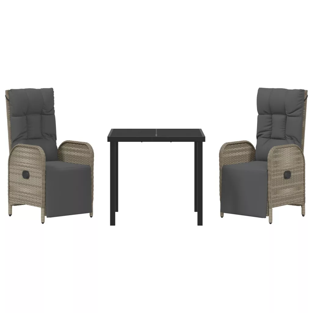 3 darabos Kerti Étkező Szett Párnákkal Szürke Poly Rattán