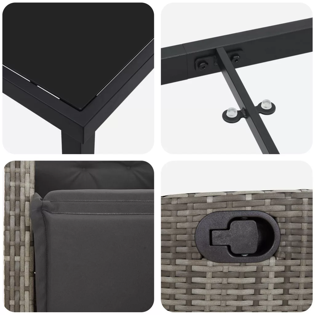 3 darabos Kerti Étkezős Készlet Szürke Poli Rattan