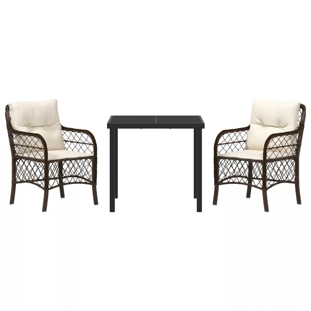 3 darabos Kerti Étkezőszett Párnákkal Barna Poly Rattan