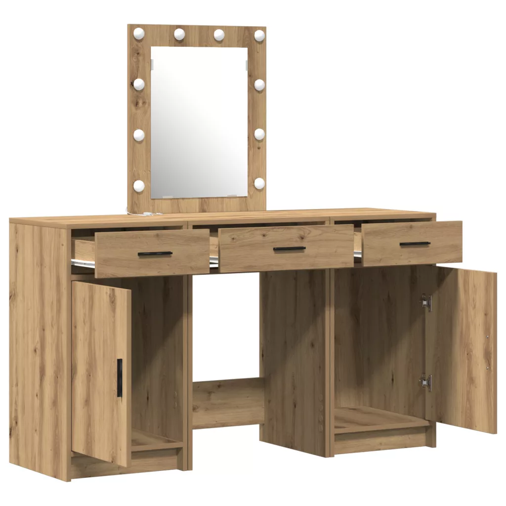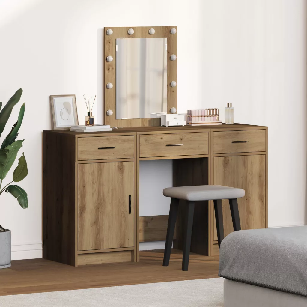 3 darabos Sminkasztal szett LED világítással, Mesterfokú tölgy műanyag