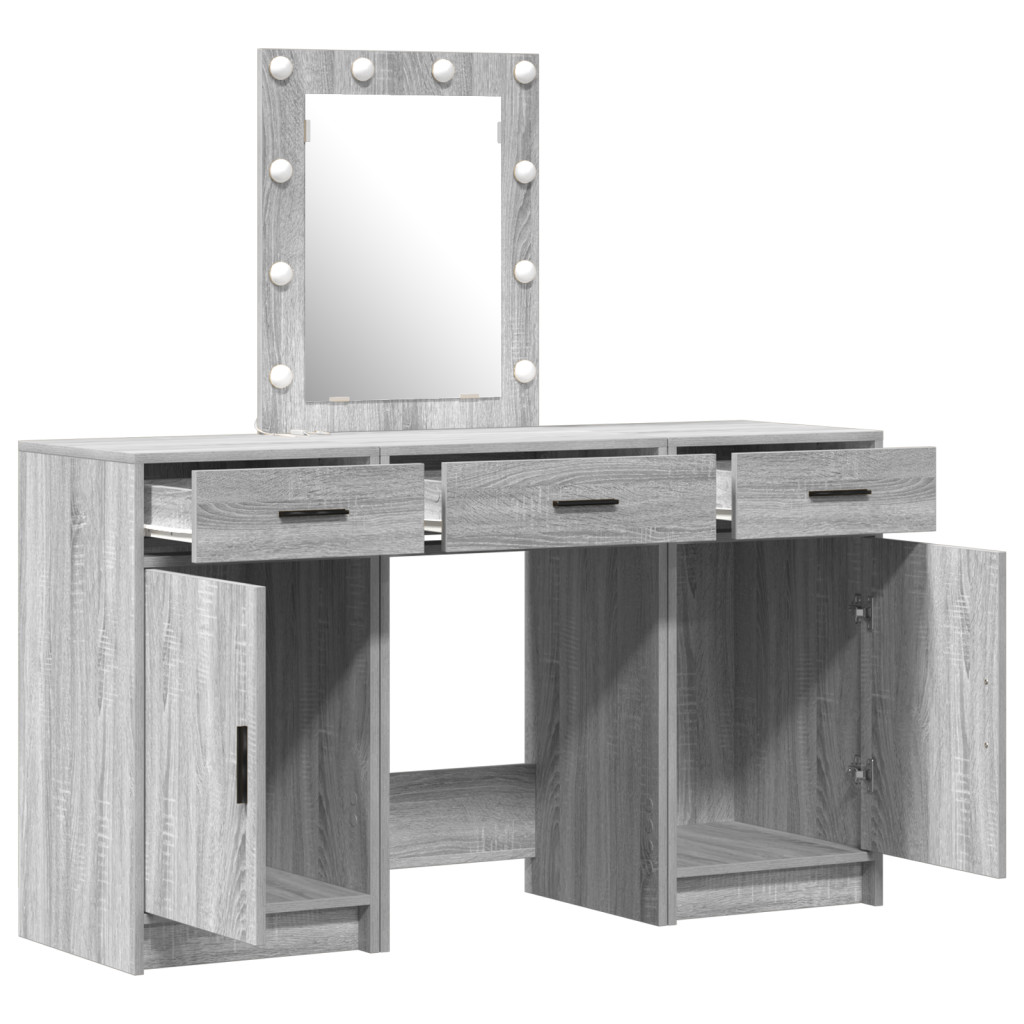 3 darabos Sminktükör szett LED világítással Szürke Sonoma rétegelt lemez