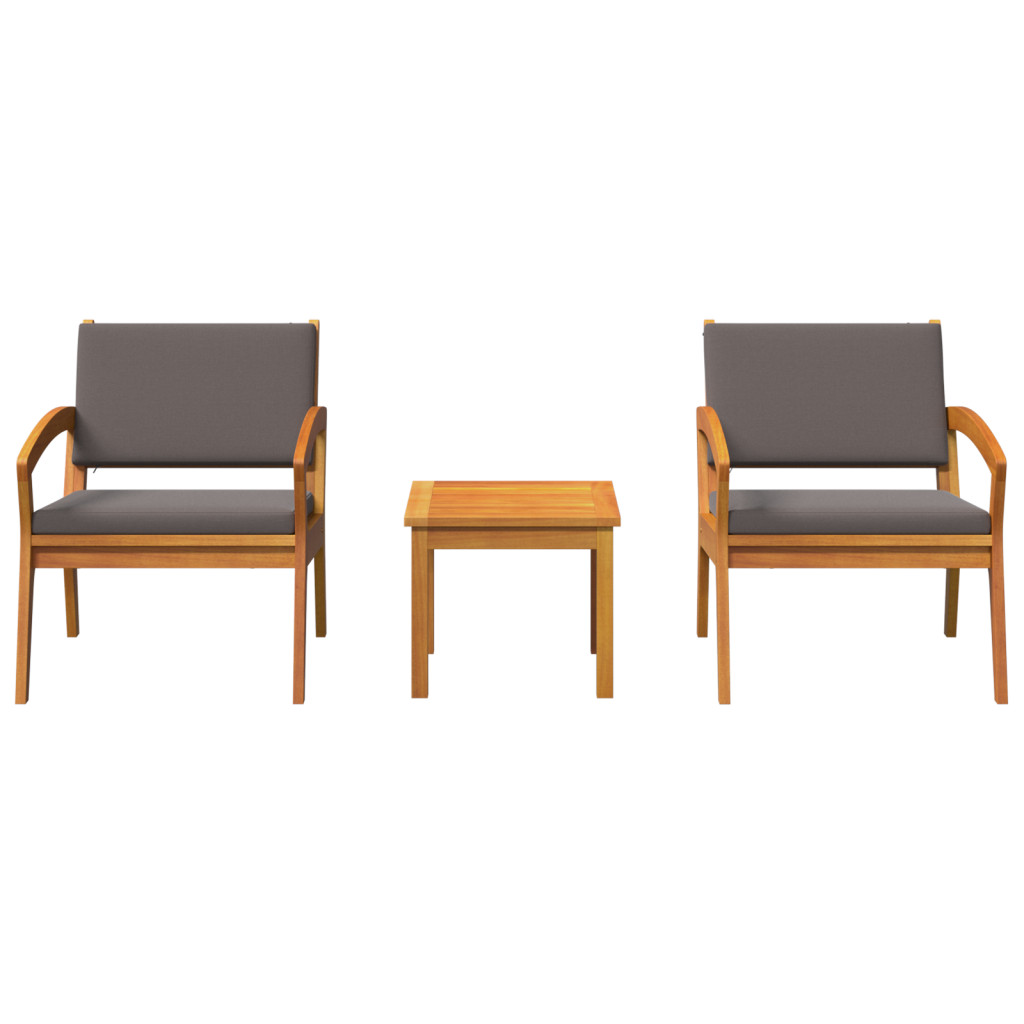 3 darabos bistro szett párnákkal, szilárd akácfából készült