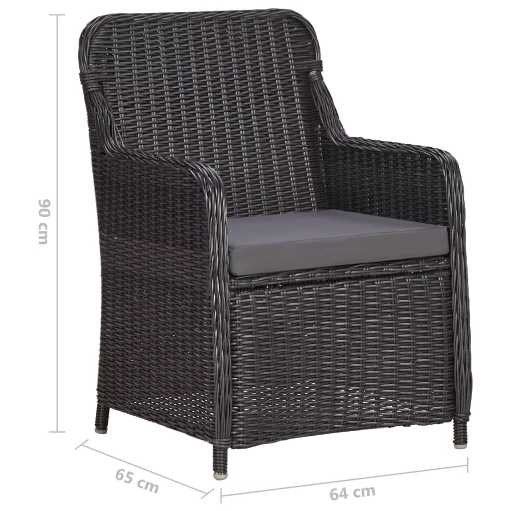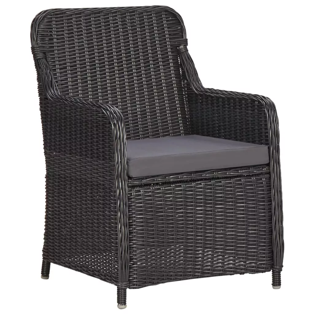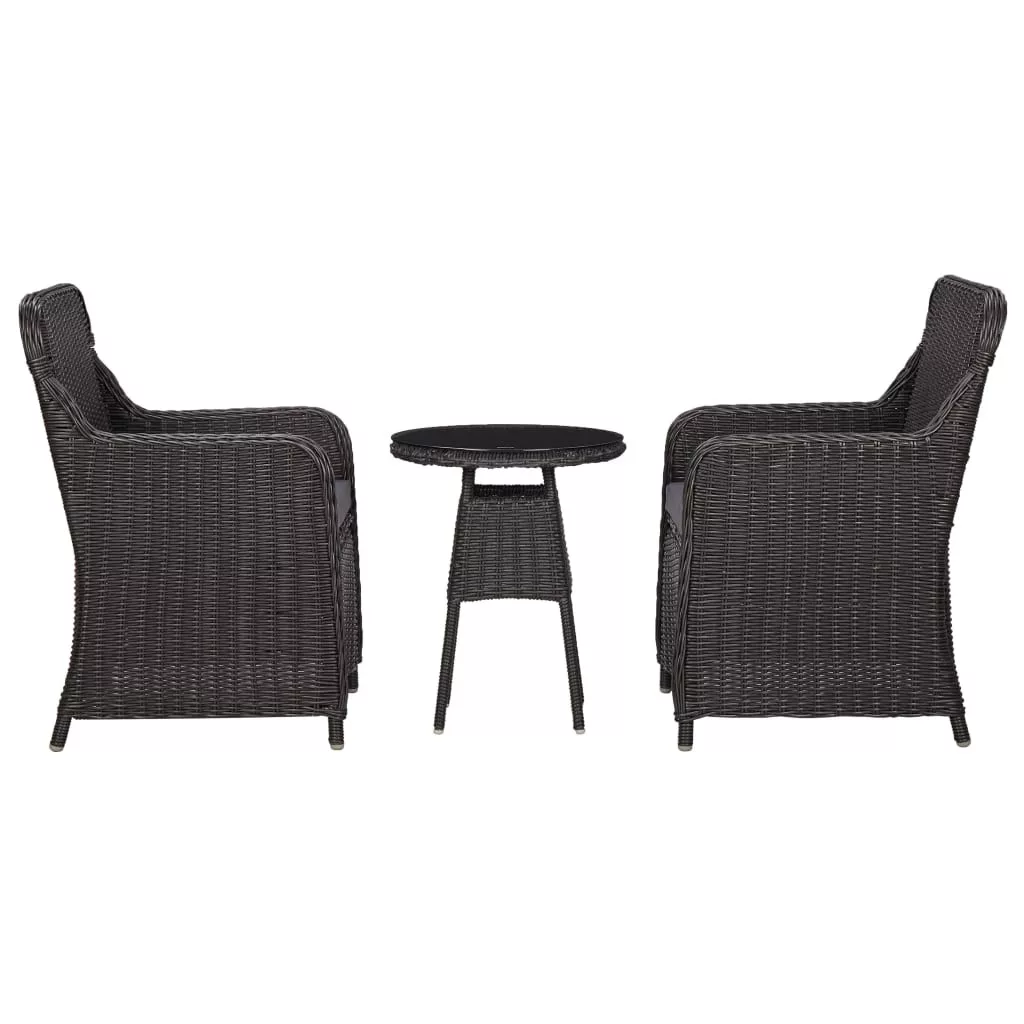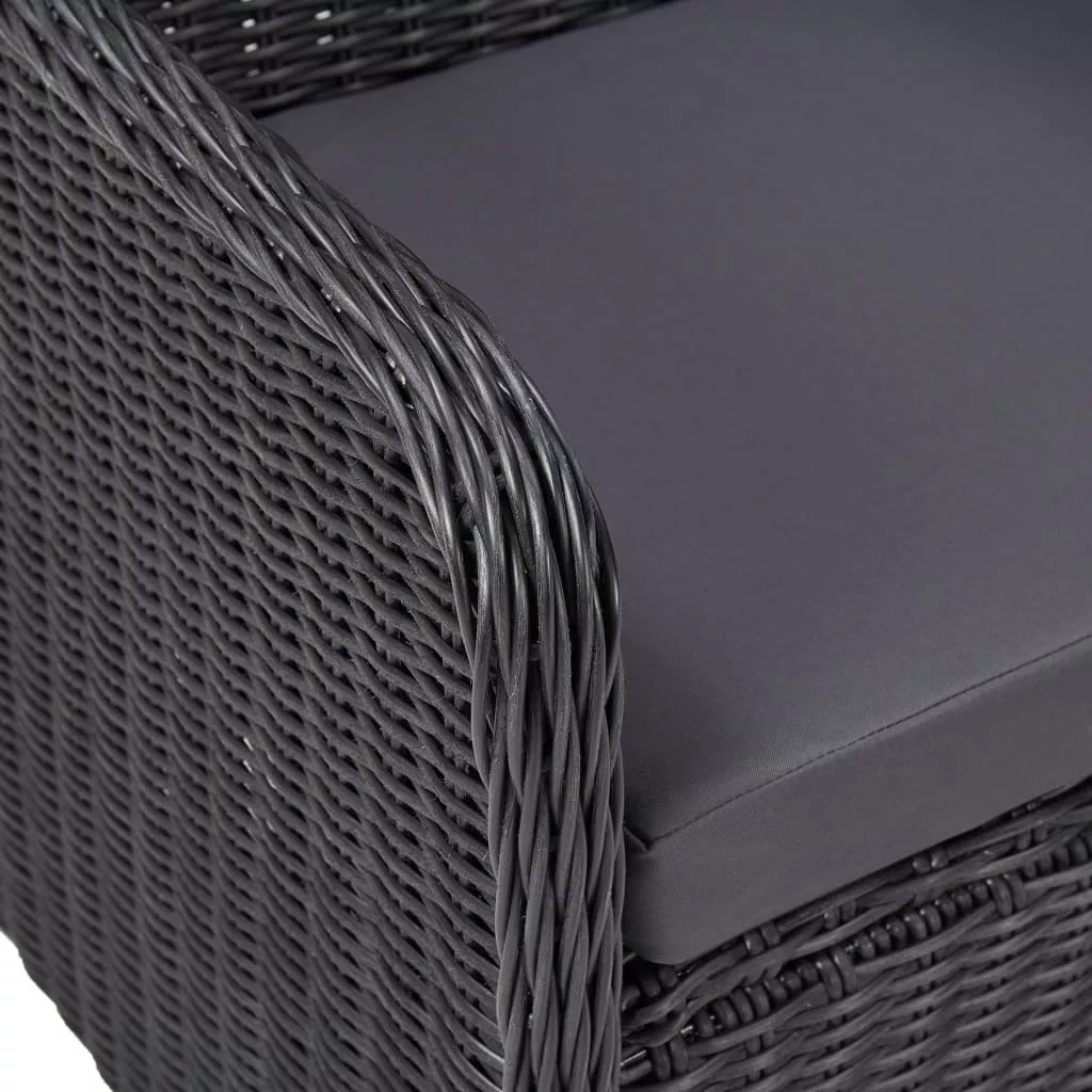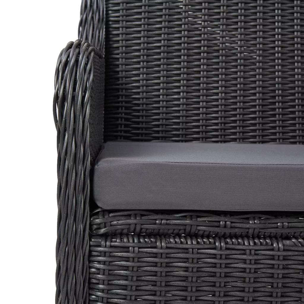 3 darabos fekete polyrattan kerti bisztrószett párnákkal