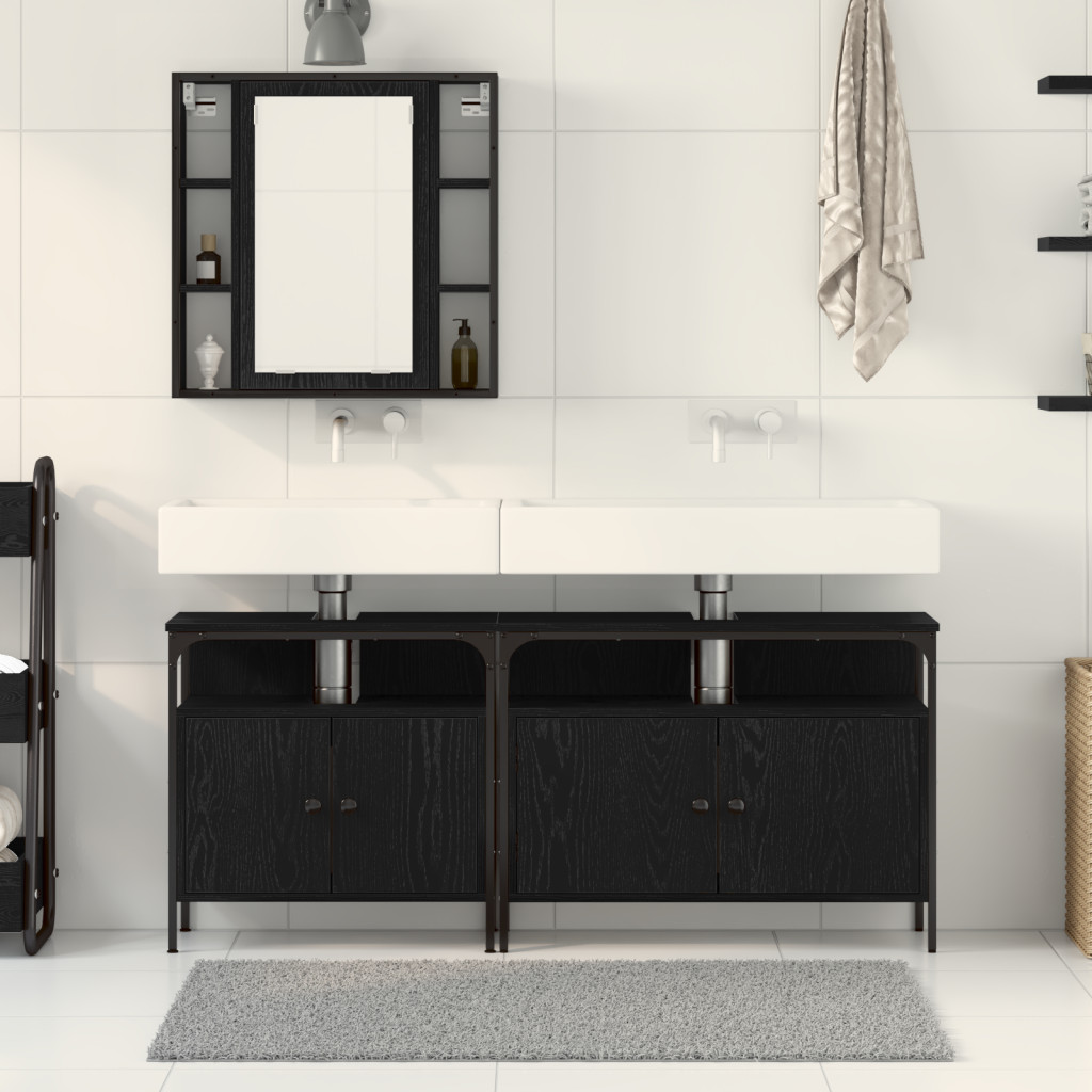 3 darabos fürdőszoba bútor szett fekete tölgy fa, mérnöki fa