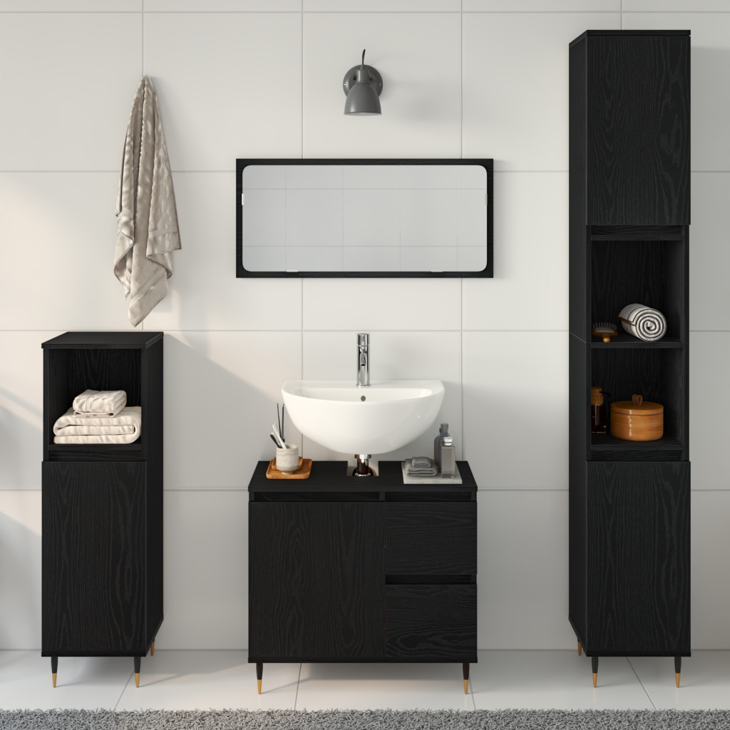 3 darabos fürdőszoba bútor szett fekete tölgy fahatású anyagból