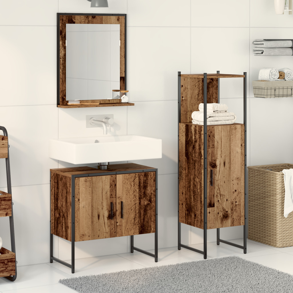 3 darabos fürdőszoba szekrény szett régi fa és mérnöki fa