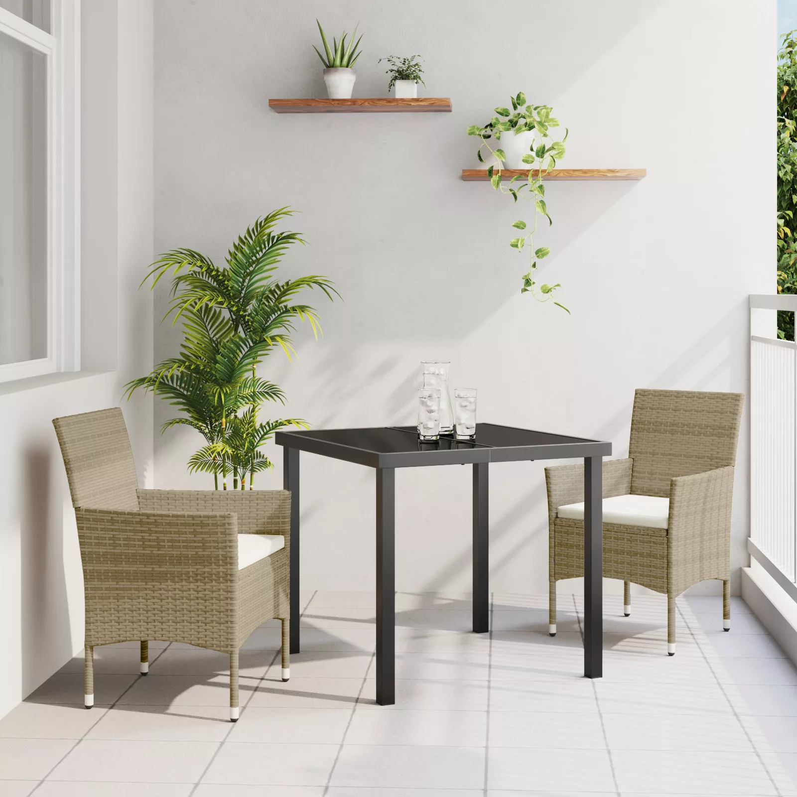 Ez a stílusos kerti étkező szék szett a kényelemre és a modern dizájnra összpontosít, tökéletes bármilyen kültéri helyszínre, mint az erkélyek, teraszok és étkezők. Ezek az elegáns székek nemcsak jól néznek ki, de a hosszú, pihentető étkezésekhez is komfortos támogatást adnak. tartós kivitel: Az erős acélváza hosszú élettartamot biztosít, időjárásálló PE rattan borítással, ami bírja a viselést. ergonómikus tervezés: A lágyan ívelt háttámlával és kartámaszokkal ezek a székek igazán kényelmesek kültéri étkezésekhez vagy lazításhoz. időjárásálló: Rozsda- és penészálló, ezek a székek egész évben jól néznek ki, ideális kültéri választás. stílusos megjelenés: A szép bézs szín és krém párnák modern megjelenést adnak, feldobva a kültéri tér kinézetét. sokoldalú felhasználás: Tökéletes étkezéshez erkélyeken, teraszokon vagy kertekben, ezek a székek több örömöt adnak a kültéri élményekhez, akár vendégeket látsz vendégül, akár csak élvezed a csendes estéket. Maximum 110 kg ülésenként. Ügyeljen a nyílt tűz és más erős hőforrások veszélyére a termék közelében.