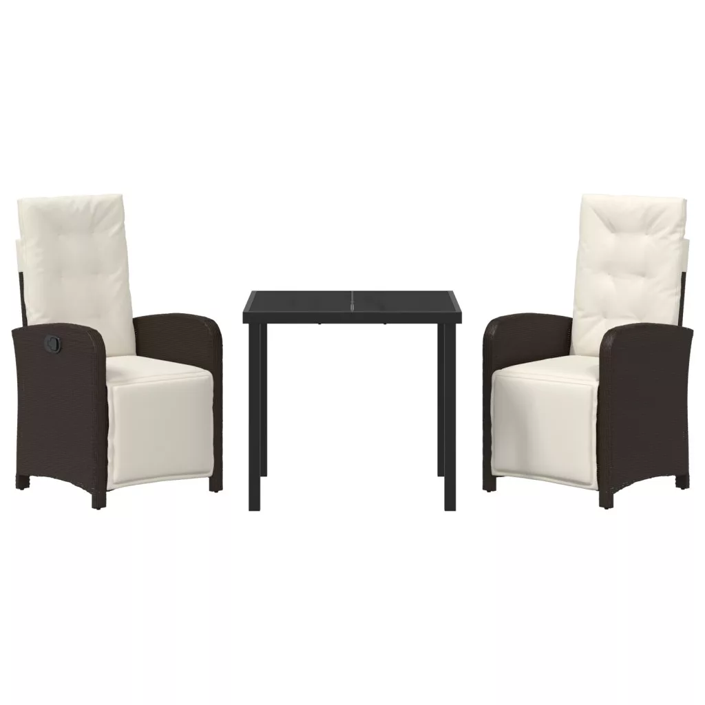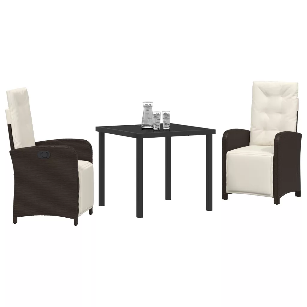 3 darabos kerti étkezőgarnitúra párnákkal barna poliratán