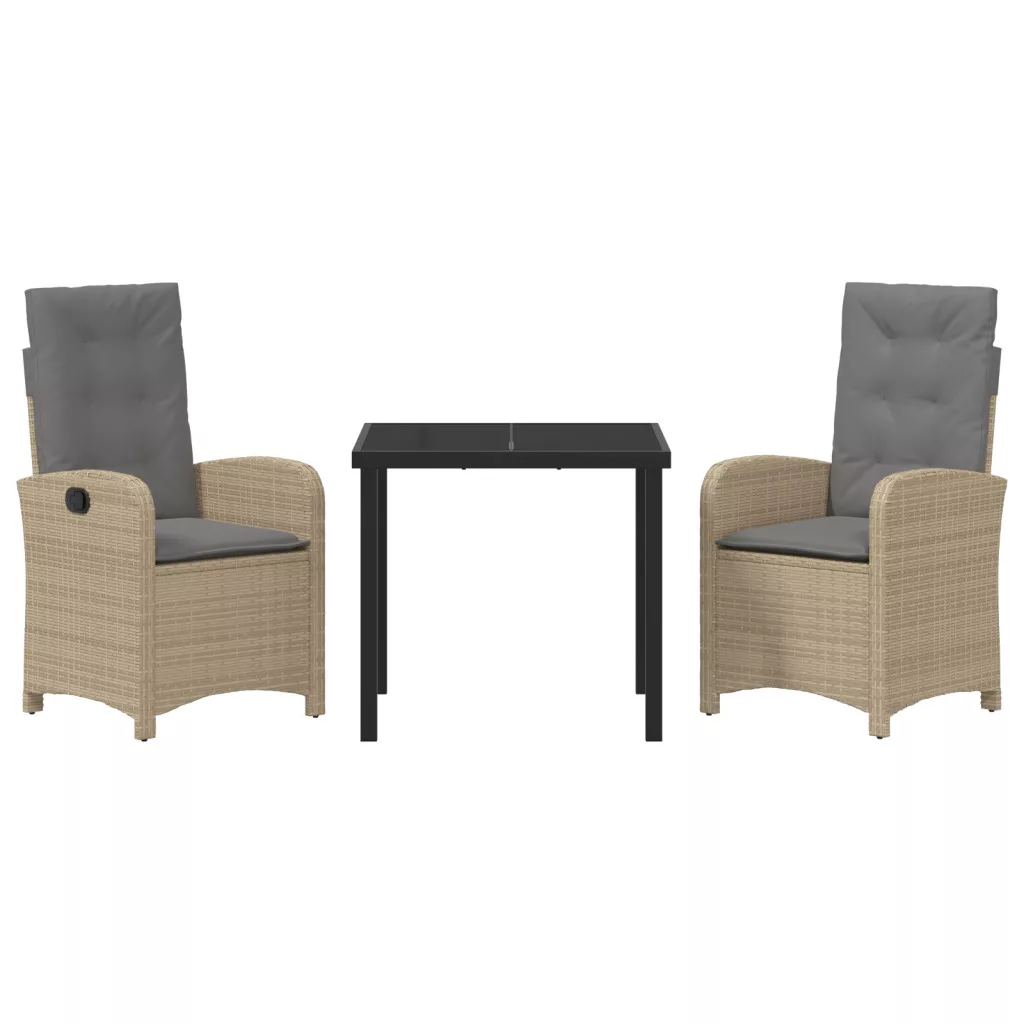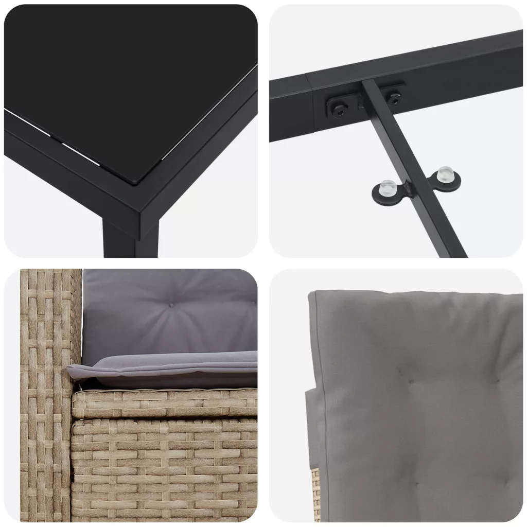 3 darabos kerti étkezőszett párnákkal bézs poly rattan