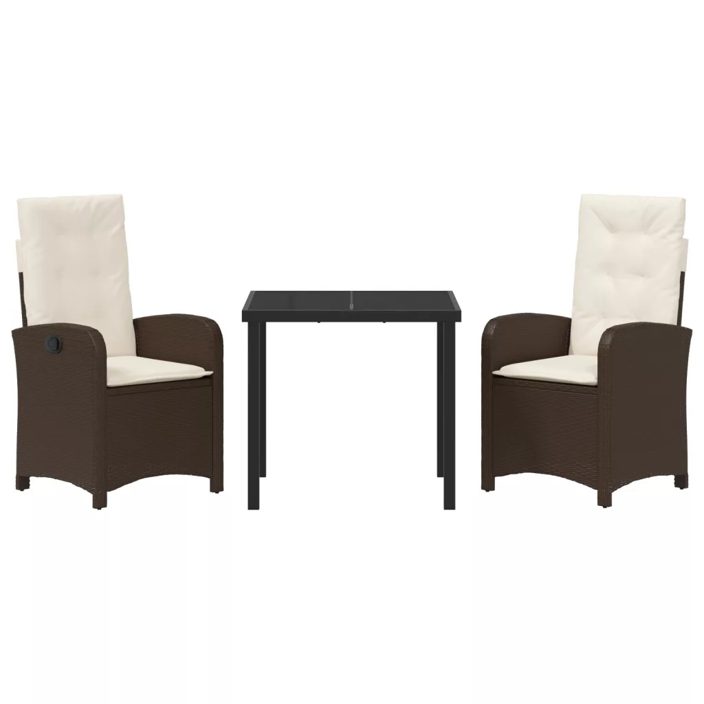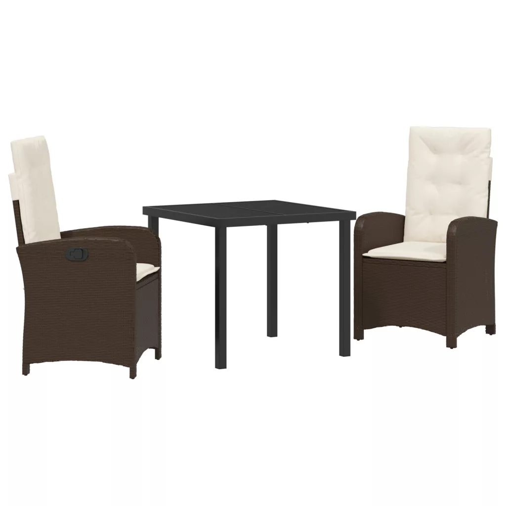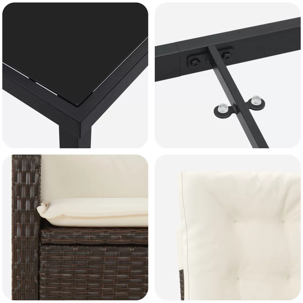 3 darabos kerti étkeztető szett párnákkal - Barna poli rattan