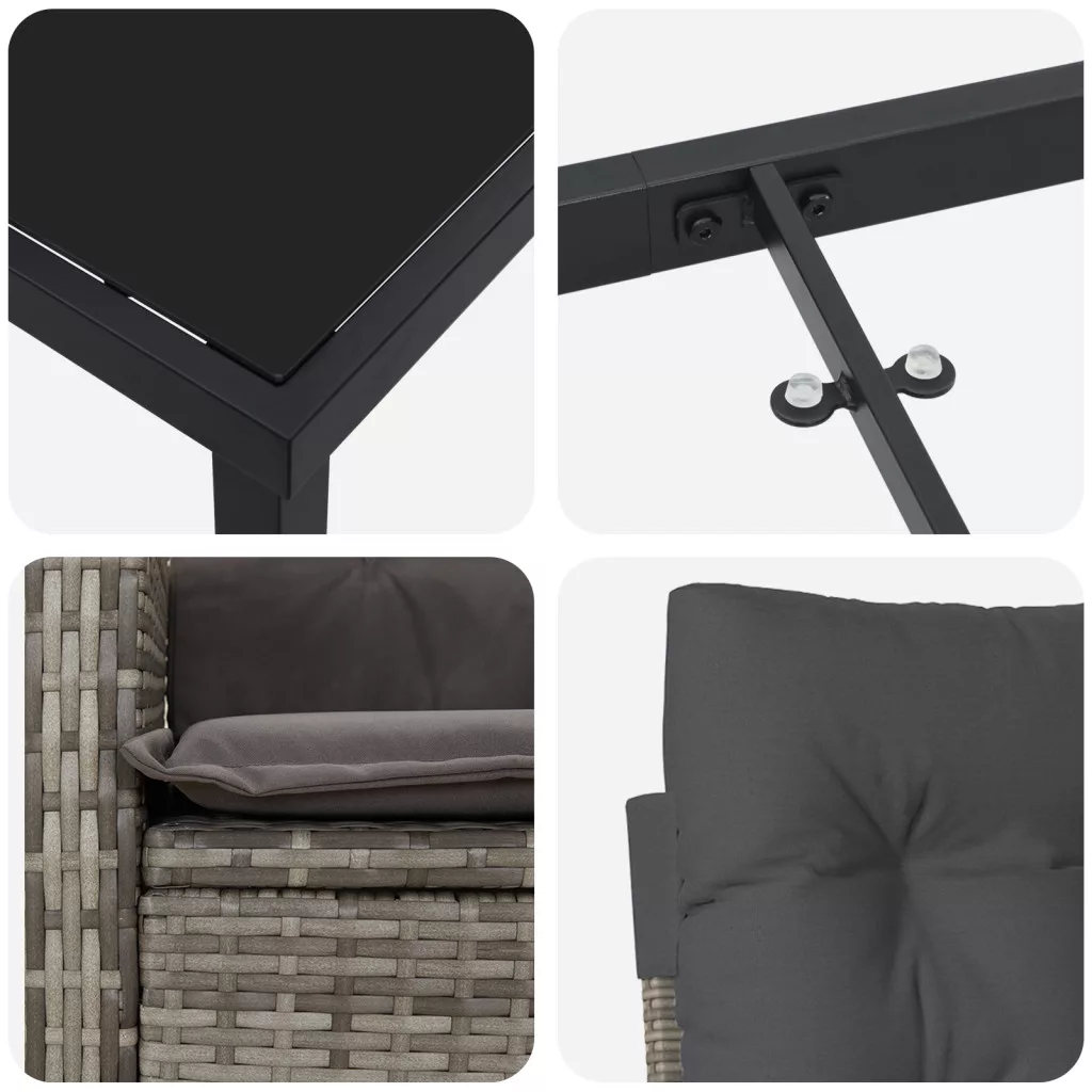 3 darabos kertivacsora szett párnákkal - Szürke Poli Rattan