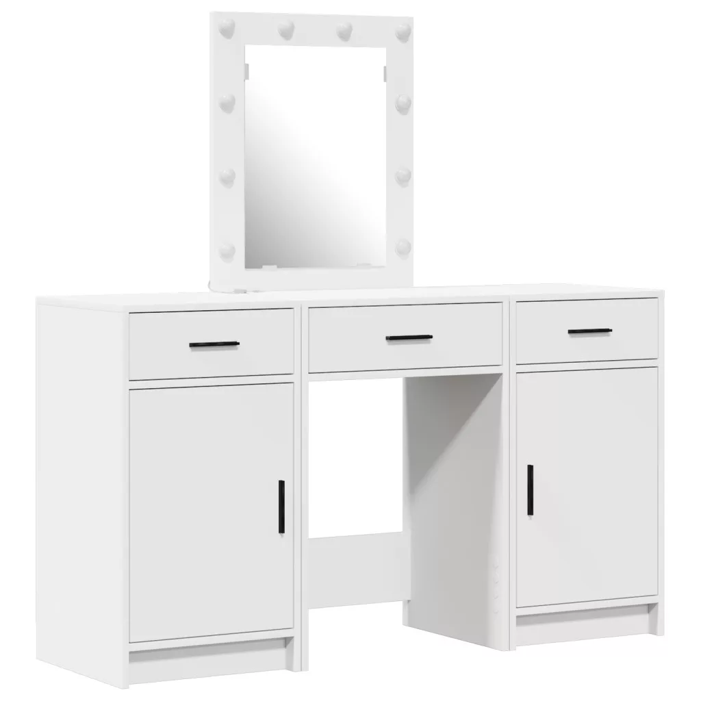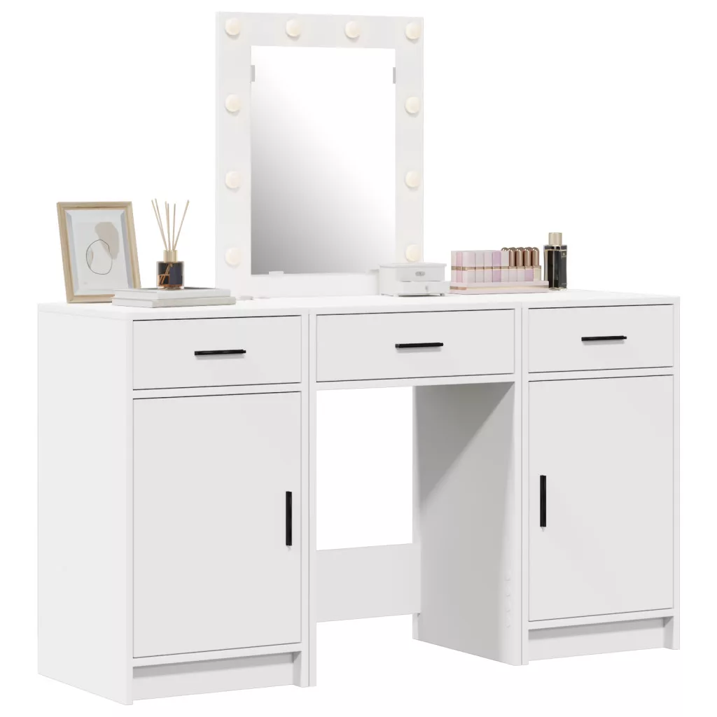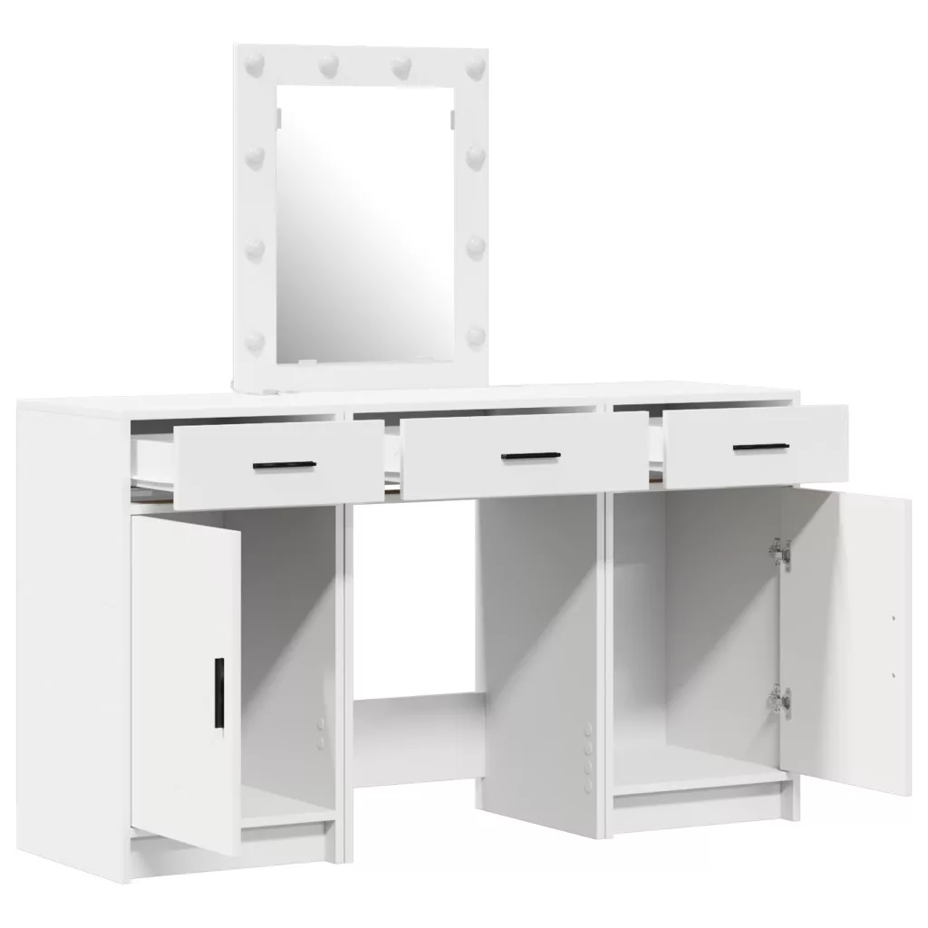 3 darabos öltözőasztal készlet LED világítással, Fehér Szerelt fa